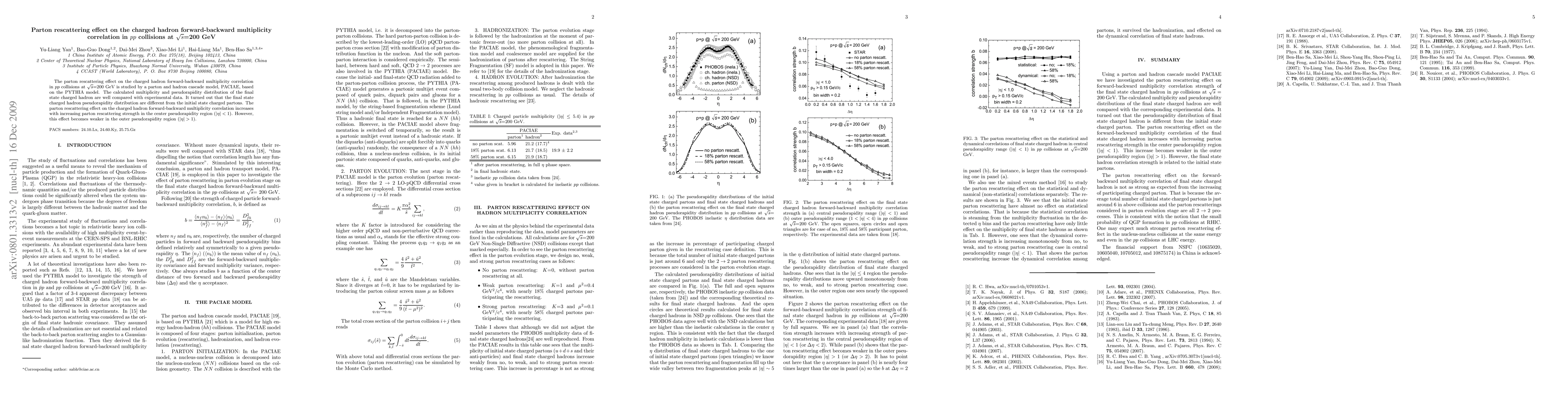 This study uses the PACIAE model to analyze parton rescattering effects on charged hadron correlations in $pp$ collisions at $\sqrt s$=200 GeV, finding that rescattering enhances forward-backward multiplicity correlations in the central region but diminishes in the outer region. The model's predictions align well with experimental data.