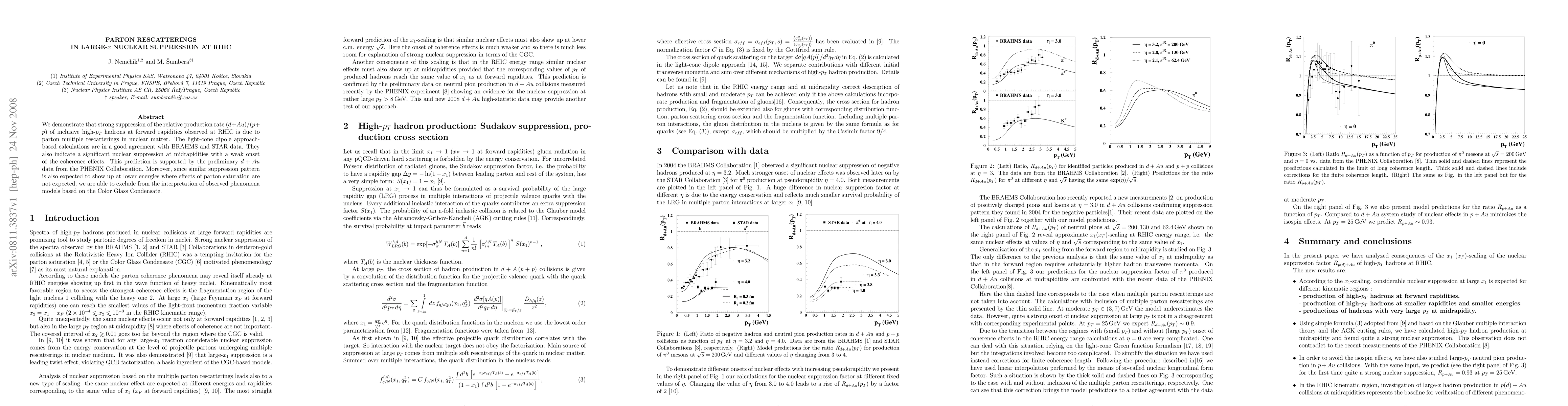 We demonstrate that strong suppression of the relative production rate (d+Au)/(p+p) of inclusive high-pT hadrons at forward rapidities observed at RHIC is due to parton multiple rescatterings in nuclear matter. The light-cone dipole approach-based calculations are in a good agreement with BRAHMS and STAR data. They also indicate a significant nuclear suppression at midrapidities with a weak onset of the coherence effects. This prediction is supported by the preliminary d+Au data from the PHENIX Collaboration. Moreover, since similar suppression pattern is also expected to show up at lower energies where effects of parton saturation are not expected, we are able to exclude from the interpretation of observed phenomena models based on the Color Glass Condensate.