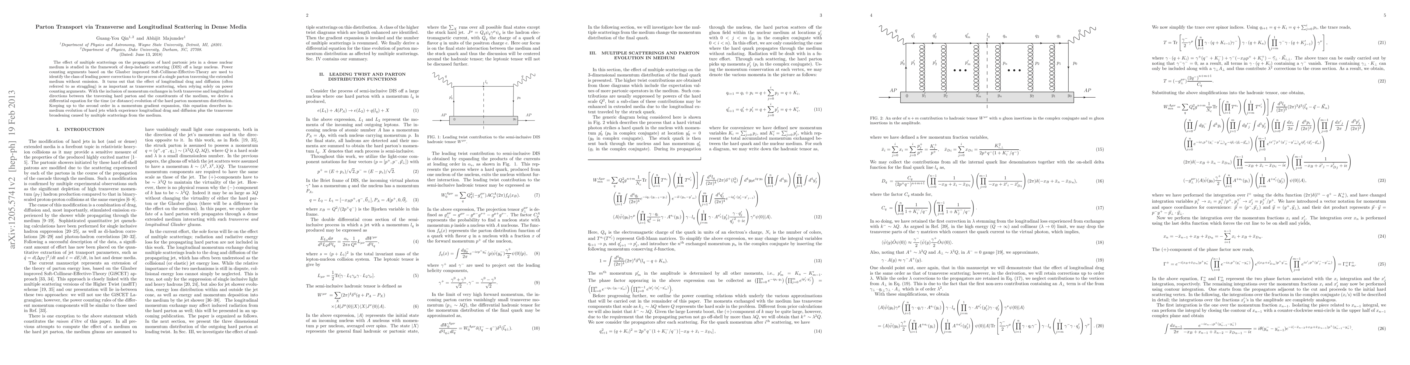 This paper investigates the impact of multiple scatterings on hard partonic jets in dense nuclear media using deep-inelastic scattering, revealing that both longitudinal drag and transverse scattering are significant. A differential equation is derived to describe the evolution of the parton momentum distribution, incorporating both longitudinal effects and transverse broadening.