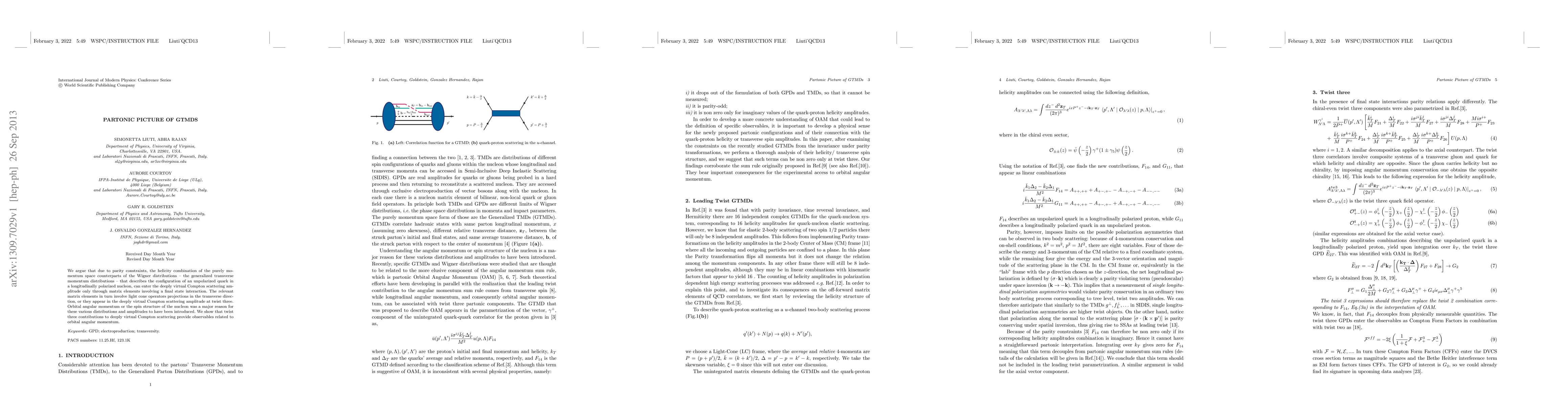 We argue that due to parity constraints, the helicity combination of the purely momentum space counterparts of the Wigner distributions -- the generalized transverse momentum distributions -- that describes the configuration of an unpolarized quark in a longitudinally polarized nucleon, can enter the deeply virtual Compton scattering amplitude only through matrix elements involving a final state interaction. The relevant matrix elements in turn involve light cone operators projections in the transverse direction, or they appear in the deeply virtual Compton scattering amplitude at twist three. Orbital angular momentum or the spin structure of the nucleon was a major reason for these various distributions and amplitudes to have been introduced. We show that twist three contributions to deeply virtual Compton scattering provide observables related to orbital angular momentum.