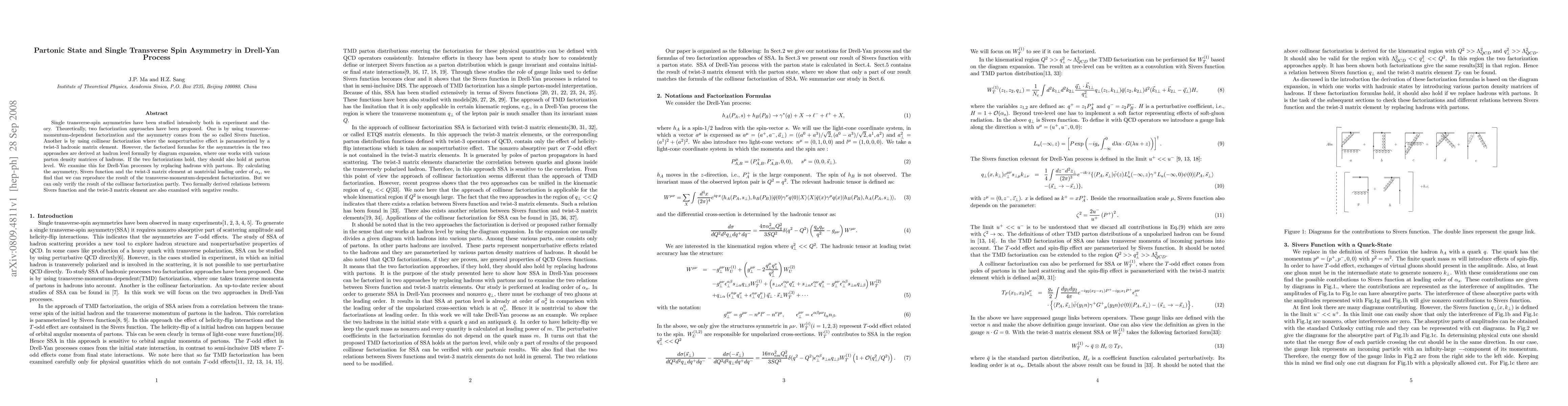 Single transverse-spin asymmetries have been studied intensively both in experiment and theory. Theoretically, two factorization approaches have been proposed. One is by using transverse-momentum-dependent factorization and the asymmetry comes from the so called Sivers function. Another is by using collinear factorization where the nonperturbative effect is parameterized by a twist-3 hadronic matrix element. However, the factorized formulas for the asymmetries in the two approaches are derived at hadron level formally by diagram expansion, where one works with various parton density matrices of hadrons. If the two factorizations hold, they should also hold at parton level. We examine this for Drell-Yan processes by replacing hadrons with partons. By calculating the asymmetry, Sivers function and the twist-3 matrix element at nontrivial leading order of $\alpha_s$, we find that we can reproduce the result of the transverse-momentum-dependent factorization. But we can only verify the result of the collinear factorization partly. Two formally derived relations between Sivers function and the twist-3 matrix element are also examined with negative results.