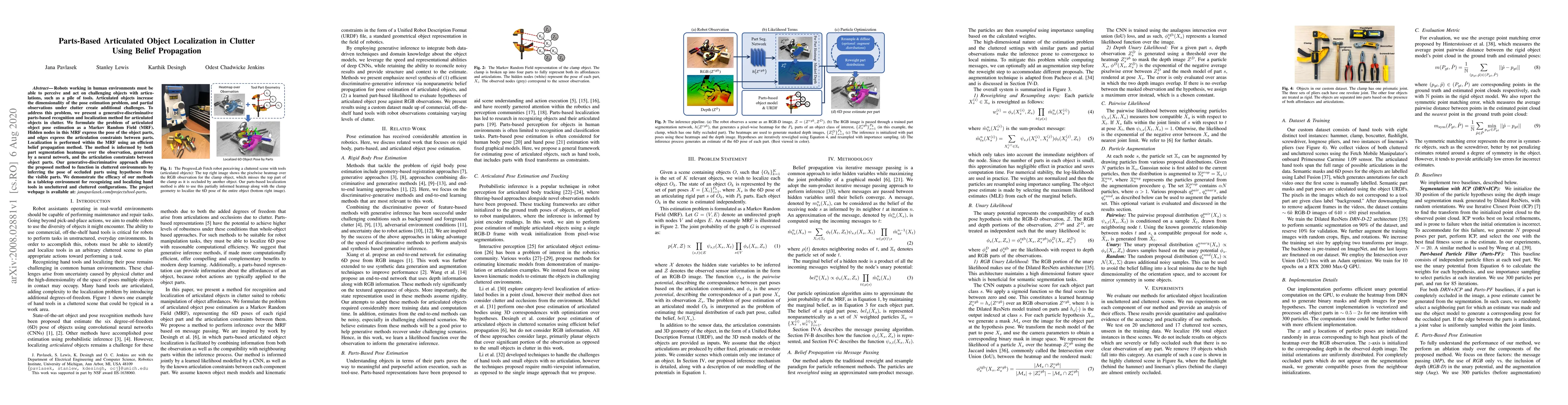 This paper presents a generative-discriminative parts-based method for localizing articulated objects in cluttered environments using belief propagation within a Markov Random Field. The approach infers the pose of occluded parts based on visible parts and articulation constraints, effectively handling partial observations.