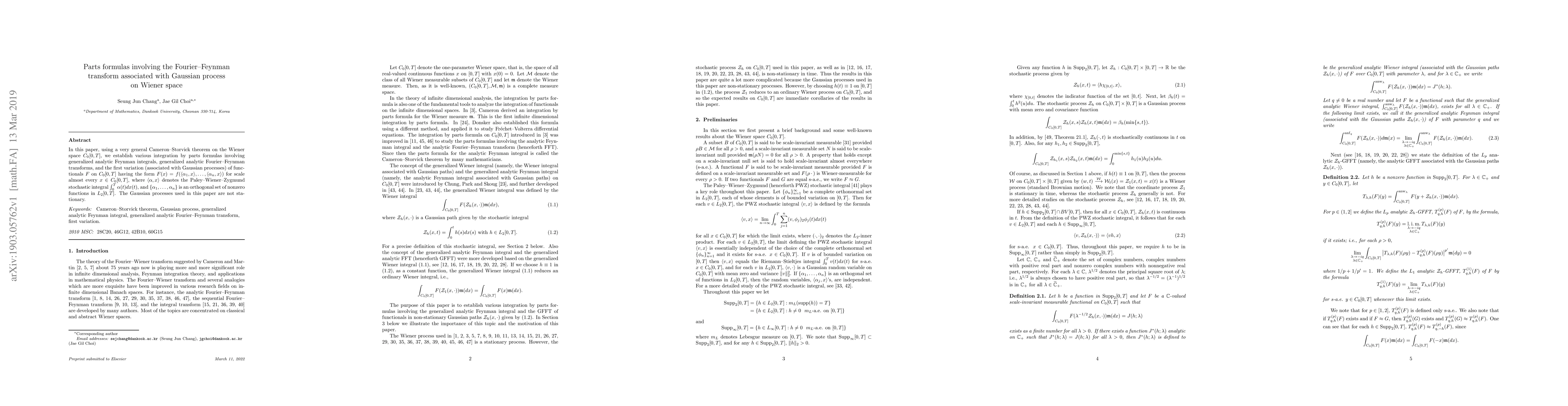 In this paper, using a very general Cameron--Storvick theorem on the Wiener space $C_0[0,T]$, we establish various integration by parts formulas involving generalized analytic Feynman integrals, generalized analytic Fourier--Feynman transforms, and the first variation (associated with Gaussian processes) of functionals $F$ on $C_0[0,T]$ having the form $F(x)=f(\langle{\alpha_1,x}\rangle, \ldots, \langle{\alpha_n,x}\rangle)$ for scale almost every $x\in C_0[0,T]$, where $\langle{\alpha,x}\rangle$ denotes the Paley--Wiener--Zygmund stochastic integral $\int_0^T \alpha(t)dx(t)$, and $\{\alpha_1,\ldots,\alpha_n\}$ is an orthogonal set of nonzero functions in $L_2[0,T]$. The Gaussian processes used in this paper are not stationary.