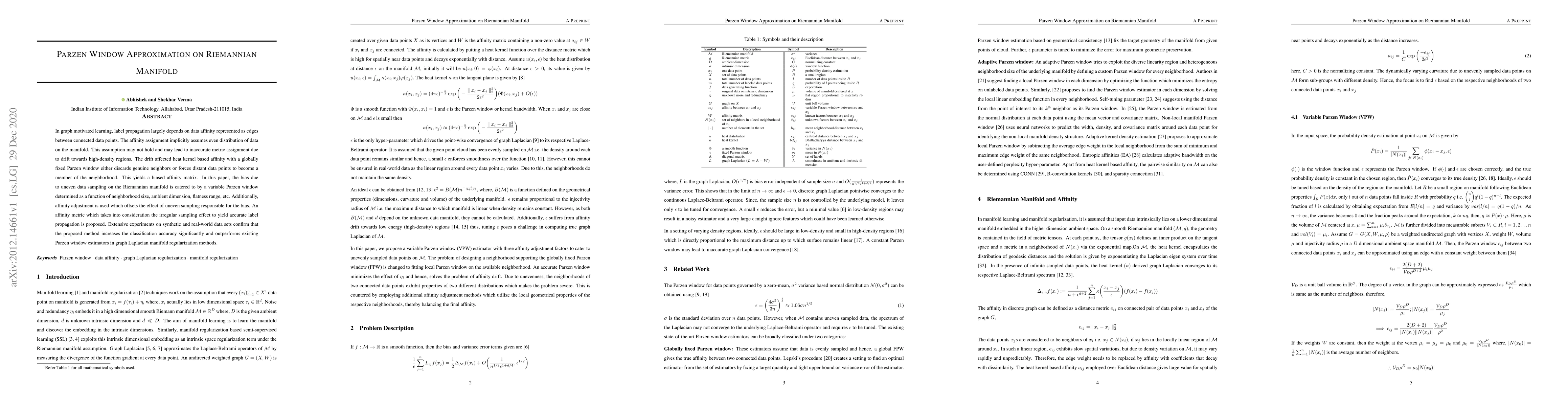 In graph motivated learning, label propagation largely depends on data affinity represented as edges between connected data points. The affinity assignment implicitly assumes even distribution of data on the manifold. This assumption may not hold and may lead to inaccurate metric assignment due to drift towards high-density regions. The drift affected heat kernel based affinity with a globally fixed Parzen window either discards genuine neighbors or forces distant data points to become a member of the neighborhood. This yields a biased affinity matrix. In this paper, the bias due to uneven data sampling on the Riemannian manifold is catered to by a variable Parzen window determined as a function of neighborhood size, ambient dimension, flatness range, etc. Additionally, affinity adjustment is used which offsets the effect of uneven sampling responsible for the bias. An affinity metric which takes into consideration the irregular sampling effect to yield accurate label propagation is proposed. Extensive experiments on synthetic and real-world data sets confirm that the proposed method increases the classification accuracy significantly and outperforms existing Parzen window estimators in graph Laplacian manifold regularization methods.