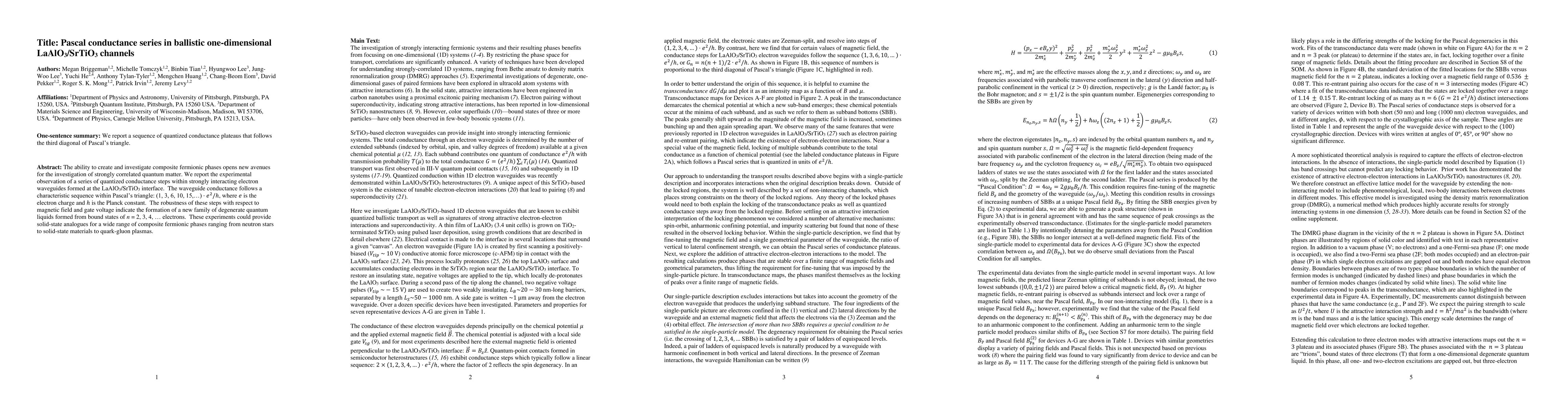 Researchers observed quantized conductance steps in a LaAlO$_3$/SrTiO$_3$ interface, resembling Pascal's triangle, indicating the formation of degenerate quantum liquids with bound states of electrons.