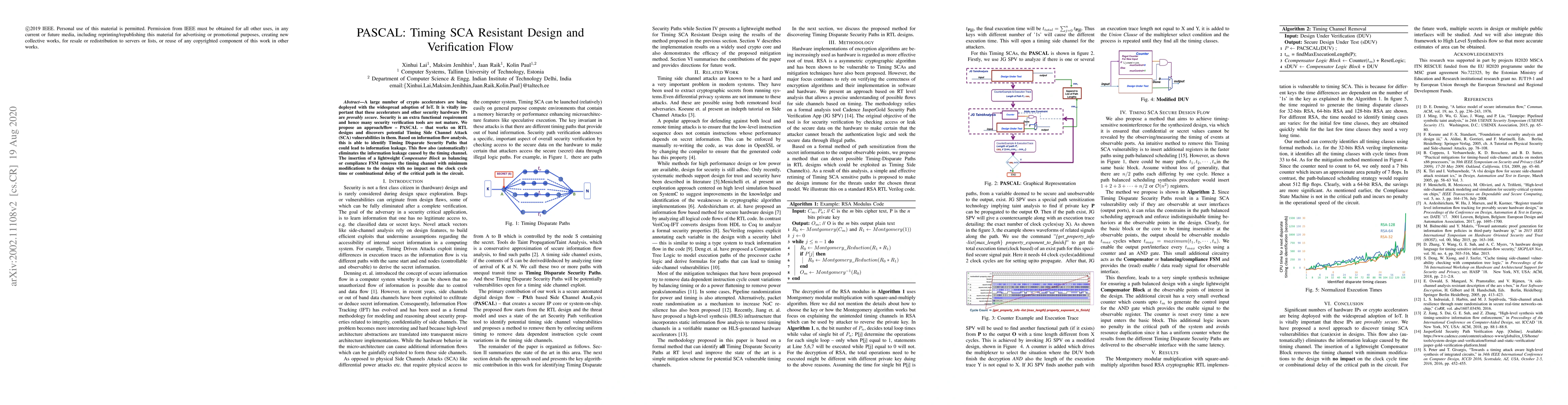 PASCAL proposes a design flow to detect Timing Side-Channel Attack vulnerabilities in RTL designs, eliminating information leakage with minimal modifications.