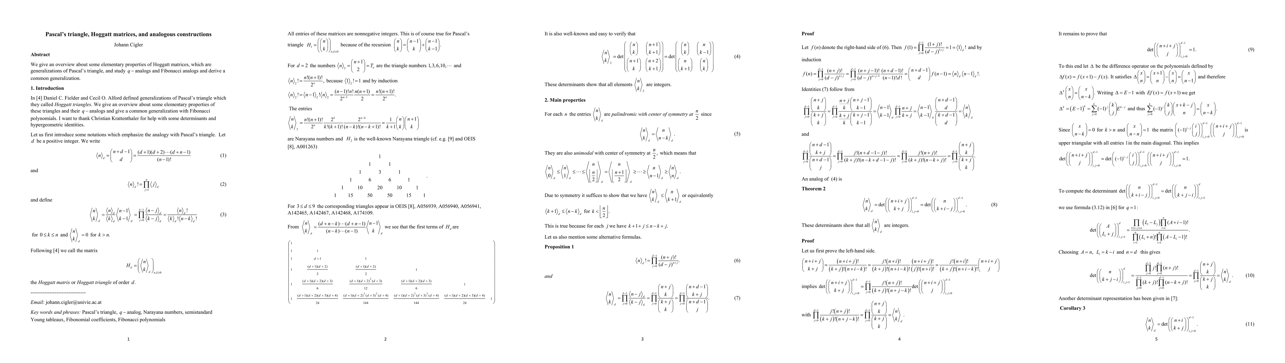 Summary: This paper provides an overview of Hoggatt matrices, which generalize the Pascal triangle, and explores their q-analogs and Fibonacci analogs, ultimately deriving a common generalization for these structures.