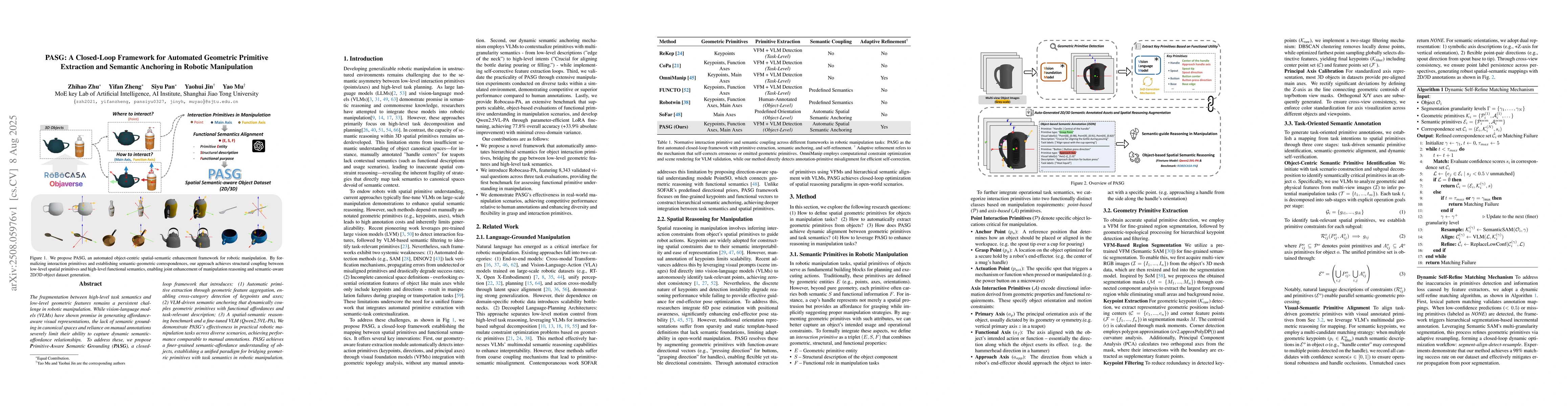 The research introduces PASG, a closed-loop framework that automatically extracts geometric primitives and semantically anchors them to functional affordances, bridging the gap between high-level task semantics and low-level geometric features in robotic manipulation. It achieves performance comparable to manual annotations, demonstrating effectiveness in diverse scenarios.