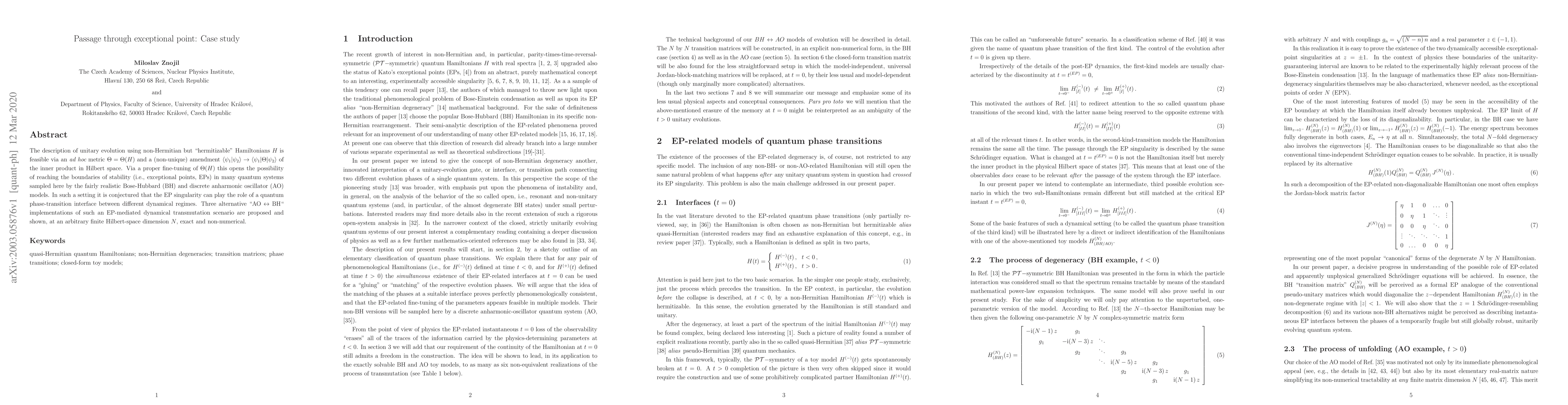 It is conjectured that the exceptional-point (EP) singularity of a one-parametric quasi-Hermitian $N$ by $N$ matrix Hamiltonian $H(t)$ can play the role of a quantum phase-transition interface connecting different dynamical regimes of a unitary quantum system. Six realizations of the EP-mediated quantum phase transitions "of the third kind" are described in detail. Fairly realistic Bose-Hubbard (BH) and discrete anharmonic oscillator (AO) models of any matrix dimension $N$ are considered in the initial, intermediate, or final phase. In such a linear algebraic illustration of the changes of phase, all ingredients (and, first of all, all transition matrices) are constructed in closed, algebraic, non-numerical form.