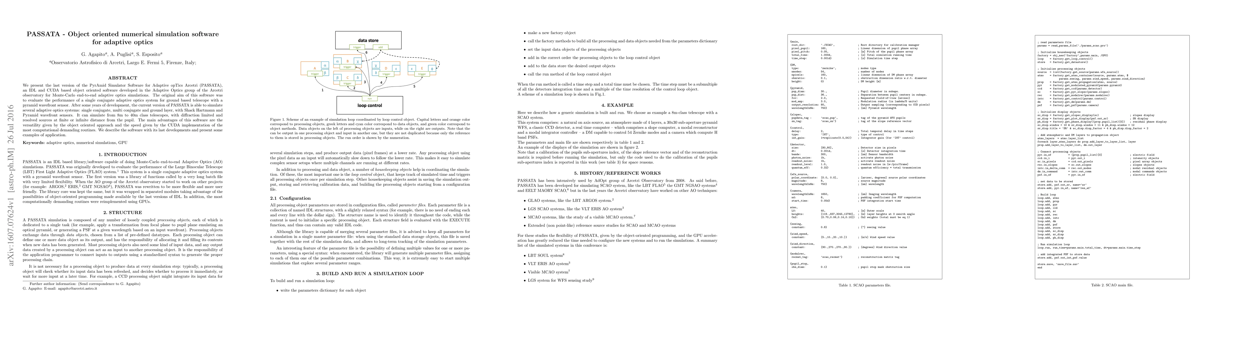 PASSATA is an advanced object-oriented numerical simulation software for adaptive optics, developed for Monte-Carlo end-to-end simulations of various adaptive optics systems. It leverages IDL and CUDA for enhanced performance and versatility.