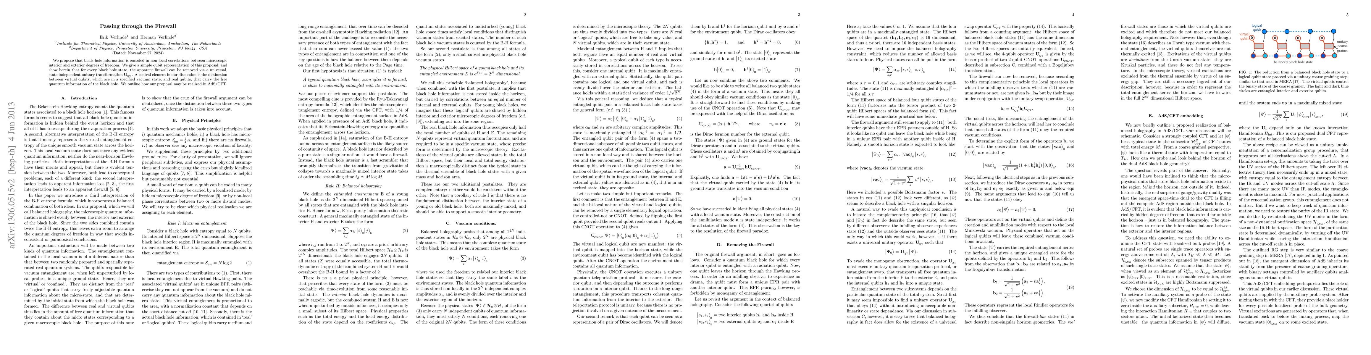 We propose that black hole information is encoded in non-local correlations between microscopic interior and exterior degrees of freedom. We give a simple qubit representation of this proposal, and show herein that for every black hole state, the apparent firewall can be removed via a universal, state independent unitary transformation. A central element in our discussion is the distinction between virtual qubits, which are in a specified vacuum state, and real qubits, that carry the free quantum information of the black hole. We outline how our proposal may be realized in AdS/CFT