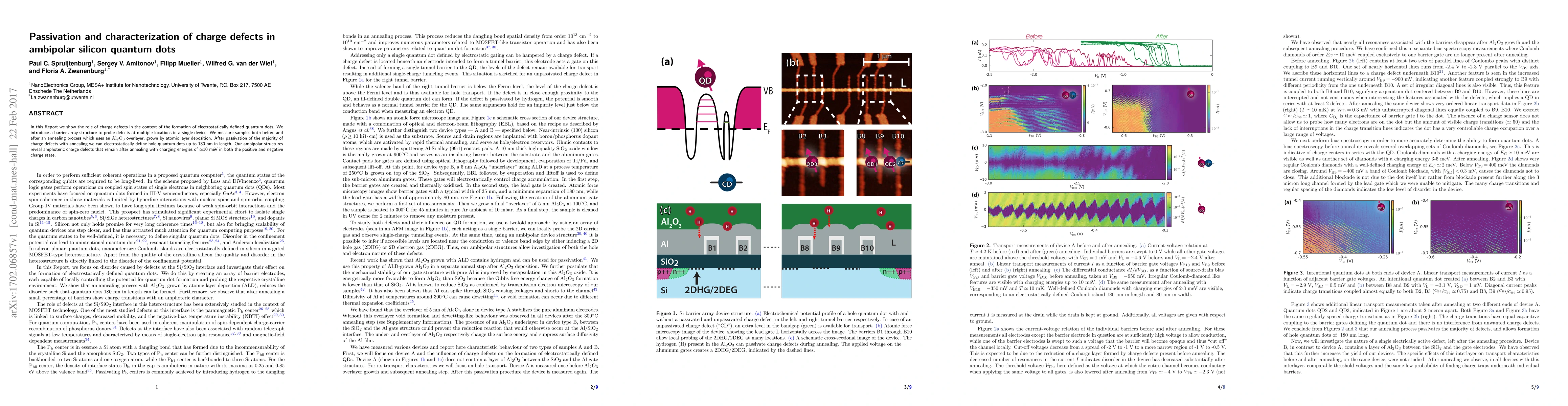 In this Report we show the role of charge defects in the context of the formation of electrostatically defined quantum dots. We introduce a barrier array structure to probe defects at multiple locations in a single device. We measure samples both before and after an annealing process which uses an Al$_2$O$_3$ overlayer, grown by atomic layer deposition. After passivation of the majority of charge defects with annealing we can electrostatically define hole quantum dots up to 180 nm in length. Our ambipolar structures reveal amphoteric charge defects that remain after annealing with charging energies of ~10 meV in both the positive and negative charge state.