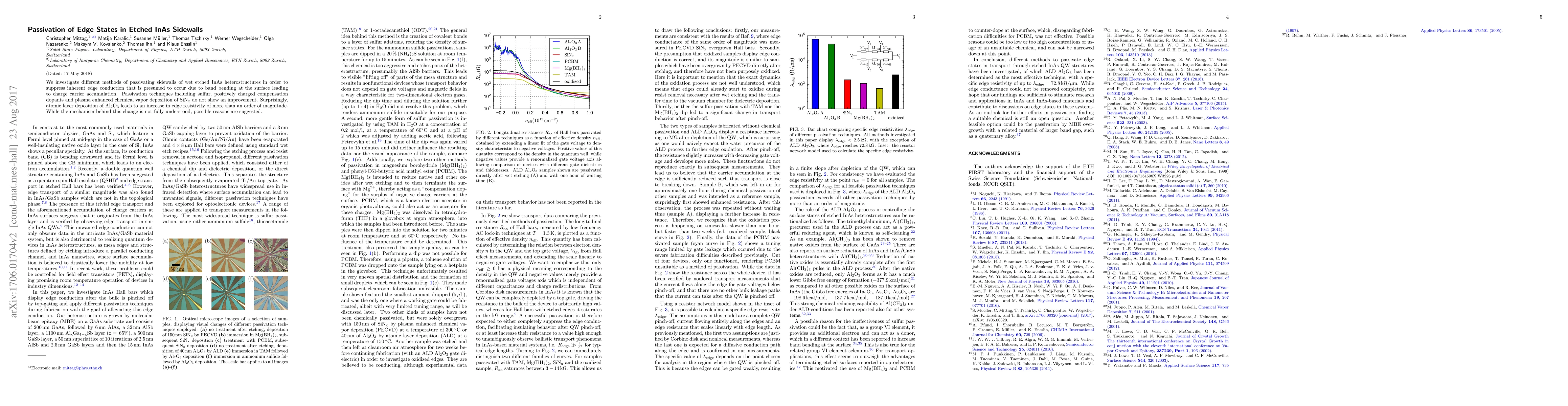 We investigate different methods of passivating sidewalls of wet etched InAs heterostructures in order to suppress inherent edge conduction that is presumed to occur due to band bending at the surface leading to charge carrier accumulation. Passivation techniques including sulfur, positively charged compensation dopants and plasma enhanced chemical vapor deposition of $\mathrm{SiN}_{\mathrm{x}}$ do not show an improvement. Surprisingly, atomic layer deposition of $\mathrm{Al}_{\mathrm{2}}\mathrm{O}_{\mathrm{3}}$ leads to an increase in edge resistivity of more than an order of magnitude. While the mechanism behind this change is not fully understood, possible reasons are suggested.
