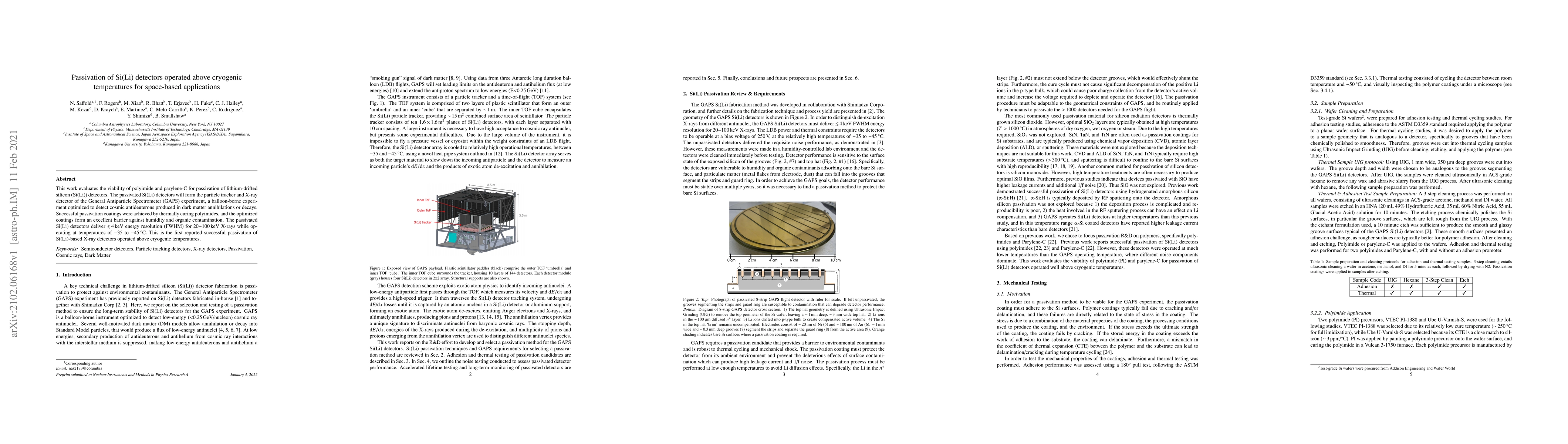 This study investigates the use of polyimide and parylene-C coatings to passivate lithium-drifted silicon (Si(Li)) detectors for space-based GAPS experiment, achieving successful passivation and maintaining $\lesssim\,4$ keV energy resolution for X-rays while operating at temperatures of $-$35 to $-45\,^{\circ}$C.