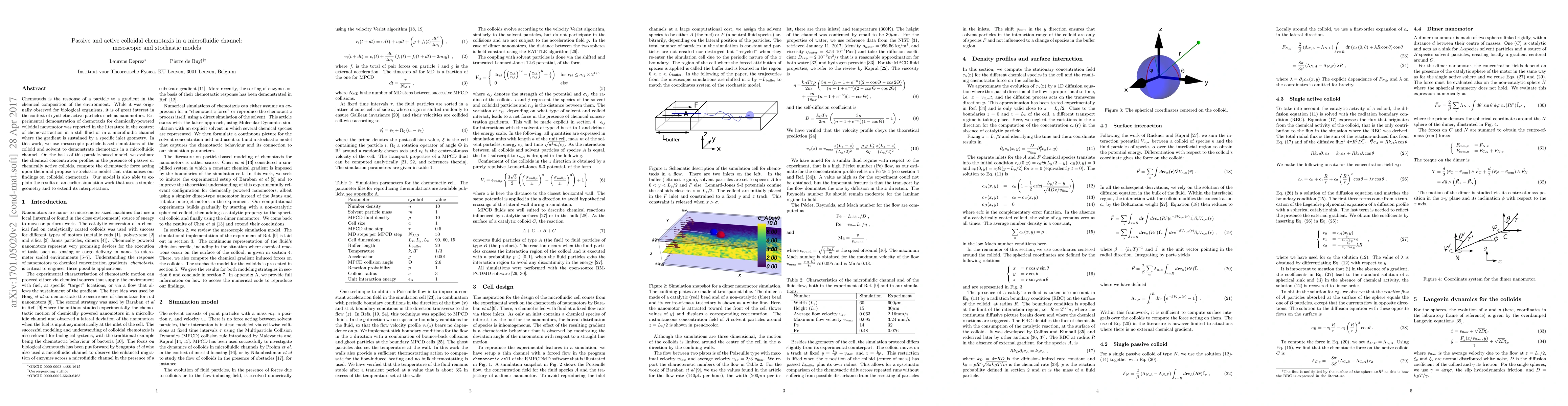 This paper explores chemotaxis in synthetic colloidal nanomotors using mesoscopic simulations in microfluidic channels, comparing passive and active colloid behaviors. It proposes a stochastic model to explain the chemotactic forces and validates the model against previous simulation results.