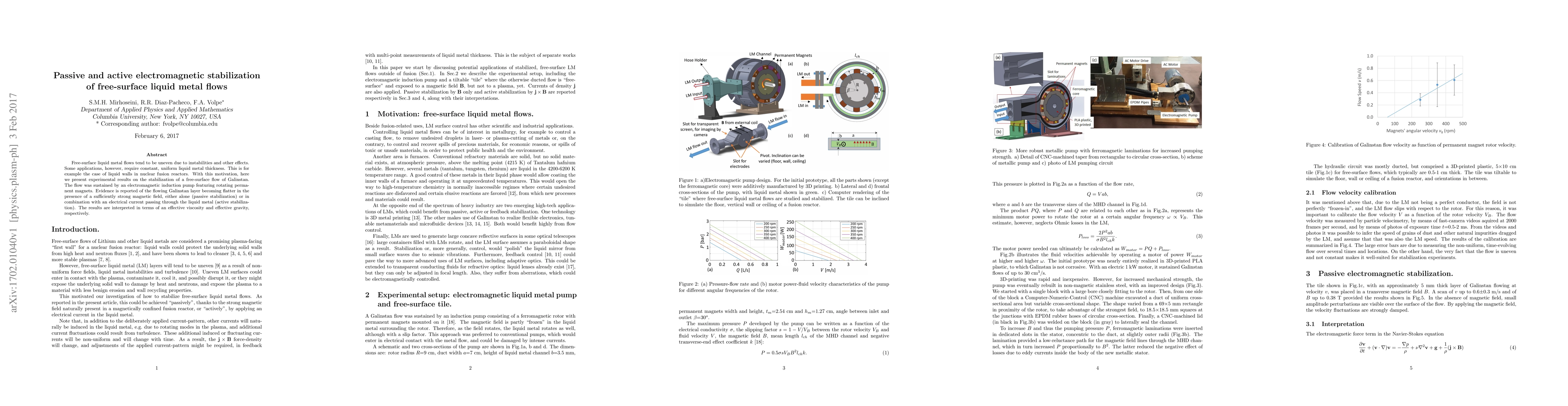 This paper presents experimental results on stabilizing uneven free-surface liquid metal flows using electromagnetic methods, demonstrating that a strong magnetic field can flatten the flow either passively or actively when combined with an electrical current, interpreted through effective viscosity and gravity models.