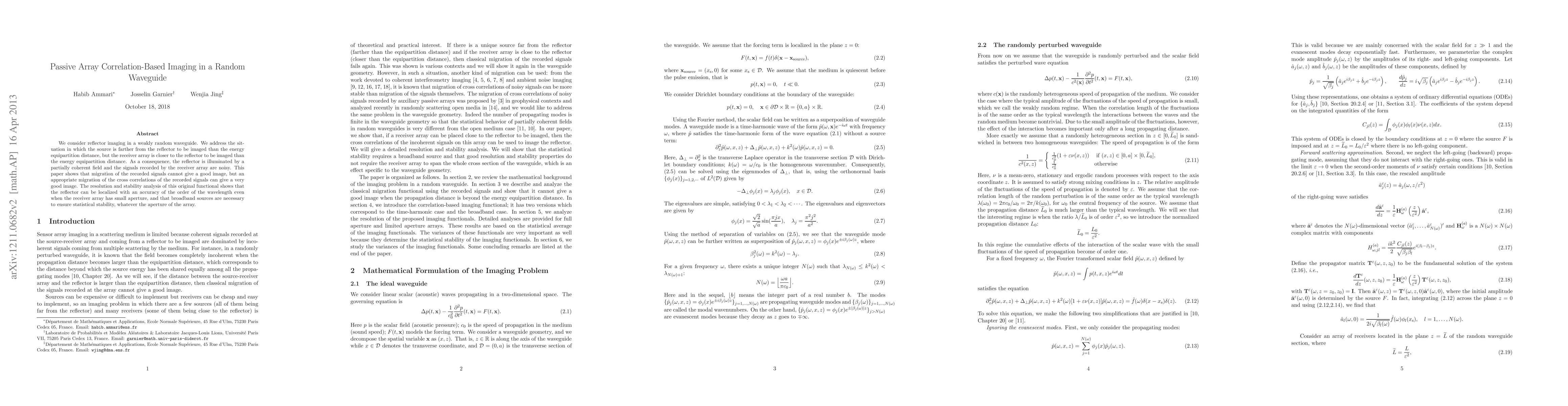 We consider reflector imaging in a weakly random waveguide. We address the situation in which the source is farther from the reflector to be imaged than the energy equipartition distance, but the receiver array is closer to the reflector to be imaged than the energy equipartition distance. As a consequence, the reflector is illuminated by a partially coherent field and the signals recorded by the receiver array are noisy. This paper shows that migration of the recorded signals cannot give a good image, but an appropriate migration of the cross correlations of the recorded signals can give a very good image. The resolution and stability analysis of this original functional shows that the reflector can be localized with an accuracy of the order of the wavelength even when the receiver array has small aperture, and that broadband sources are necessary to ensure statistical stability, whatever the aperture of the array.