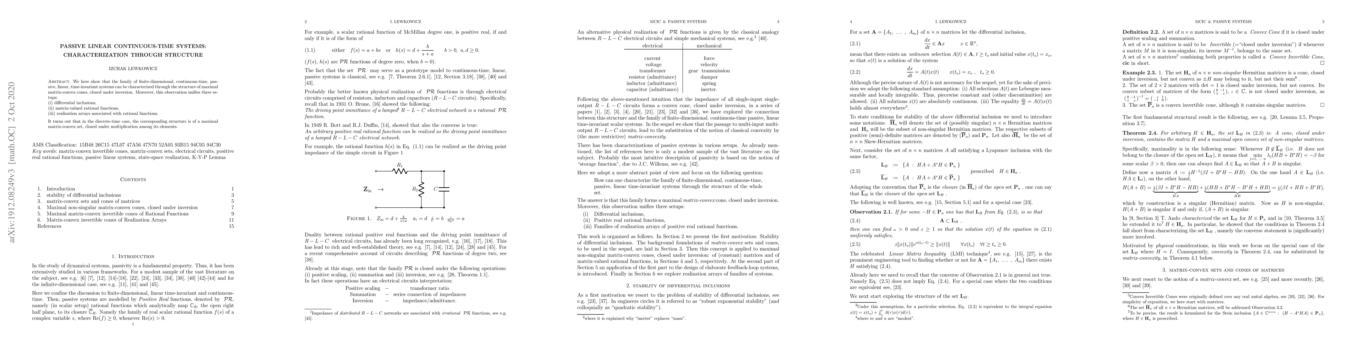 Researchers found that certain types of linear continuous-time systems can be characterized using maximal, matrix-convex cones that are closed under inversion. This discovery unifies three different areas of study in a single framework.