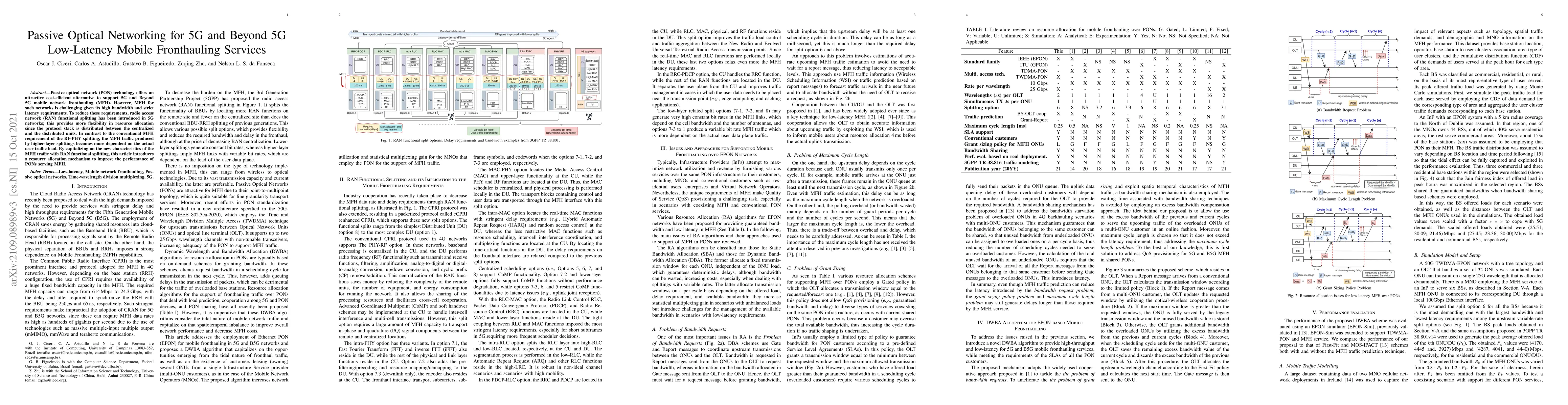This paper explores the use of passive optical networks (PON) for cost-efficient 5G and Beyond 5G mobile fronthauling services, addressing the challenges of high bandwidth and strict latency. It proposes a resource allocation mechanism leveraging RAN functional splitting to optimize performance under varying user traffic loads.