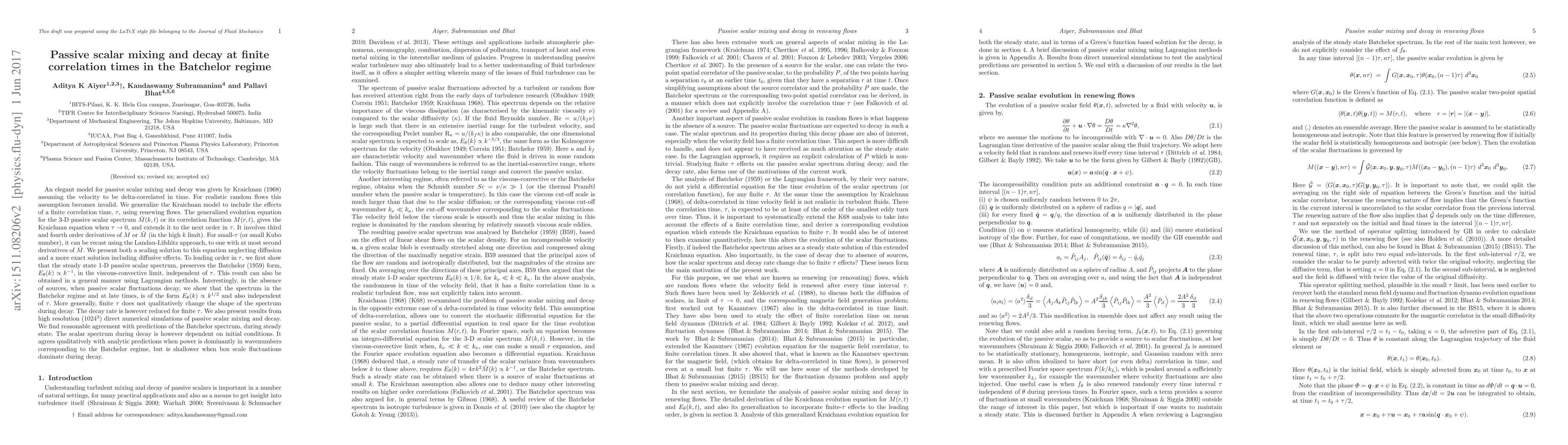 This paper generalizes Kraichnan's model for passive scalar mixing to include finite correlation times, showing that the Batchelor regime's spectrum retains its form despite the inclusion of higher-order derivatives. It presents both scaling solutions and exact solutions, demonstrating that the spectrum's shape remains consistent during decay, though the decay rate is reduced.