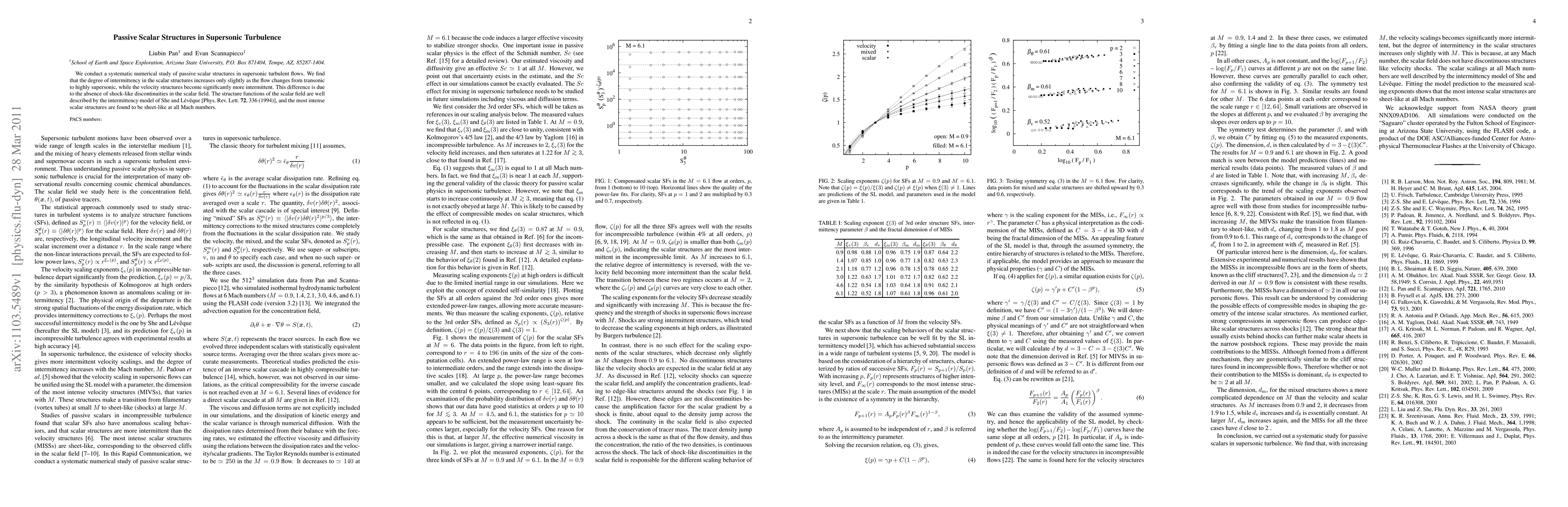 This study reveals that passive scalar structures in supersonic turbulence exhibit a slight increase in intermittency compared to velocity structures, which become significantly more intermittent. The scalar field's sheet-like intense structures are well described by the intermittency model, contrasting with the more discontinuous velocity field.
