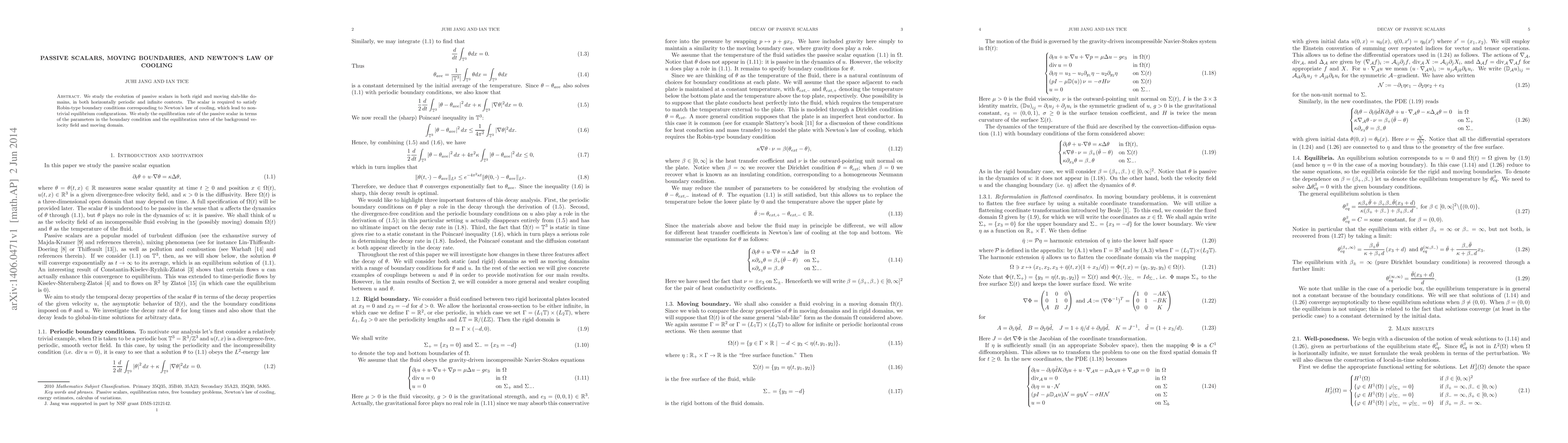We study the evolution of passive scalars in both rigid and moving slab-like domains, in both horizontally periodic and infinite contexts. The scalar is required to satisfy Robin-type boundary conditions corresponding to Newton's law of cooling, which lead to nontrivial equilibrium configurations. We study the equilibration rate of the passive scalar in terms of the parameters in the boundary condition and the equilibration rates of the background velocity field and moving domain.