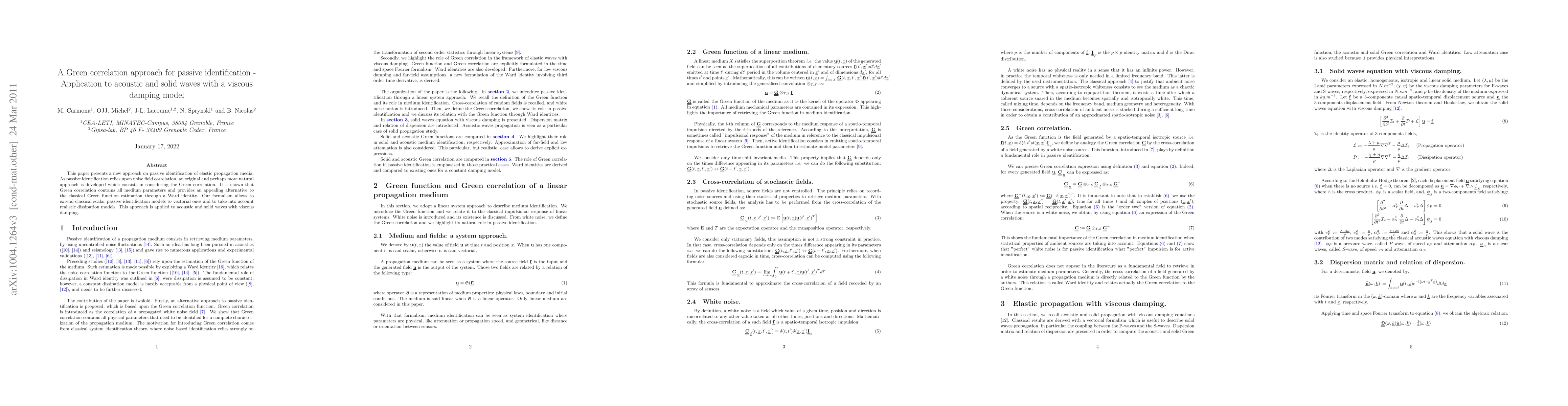 In this paper we derive relations between the cross-correlation of ambient noises recorded at two different points and the Green's function of the elastic waves in a medium with viscous damping. The Green's function allows to estimate physical parameters such as speeds or distances. Furthermore, this work is extended by introducing the Green's correlation function proposed by J-L. Lacoume in [Lacoume07]. Some recent works proved the possible reconstruction of the Green's function for scalar waves from the cross-correlation function of ambient noise. In this work, we consider vector waves propagating in a three dimensional solid medium. Two approaches are developed. Firstly, we extend theoretical derivations proposed by Y. Colin de Verdi`ere in [ColinDeVerdiere09], relating cross-correlation of scalar waves to 1D Green's function using linear operator theory. The second approach recasts the three dimensional problem in the framework of Fourier theory. This allows to improve physical understanding of the underlying physical processes as outlined in [Lacoume07].