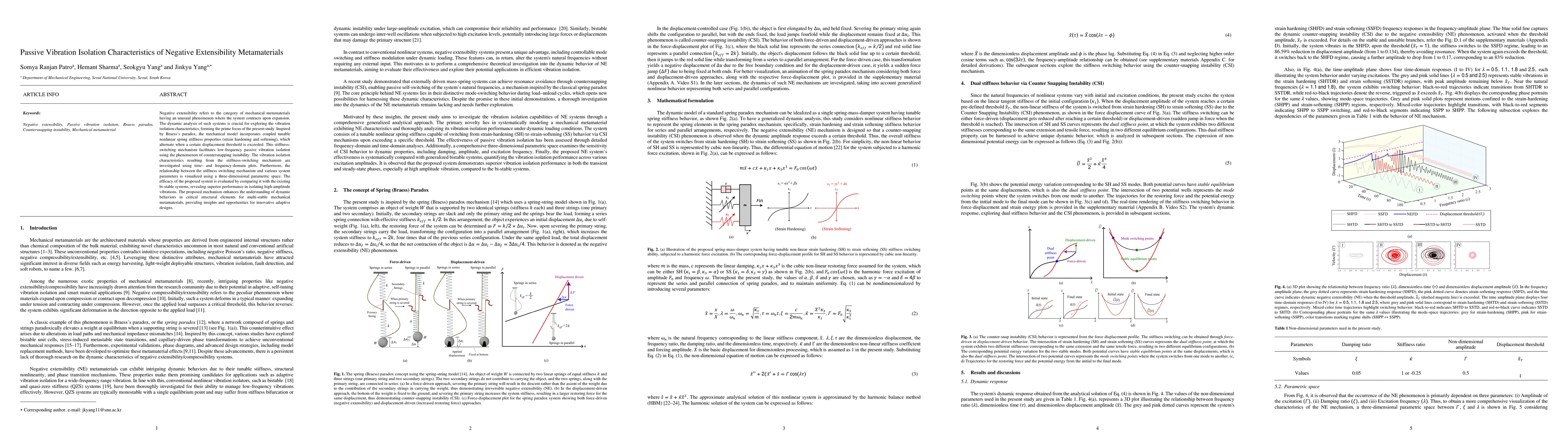 This study explores negative extensibility in mechanical metamaterials, which contract upon expansion. Utilizing a stiffness switching mechanism inspired by the Braess paradox, the research investigates low-frequency passive vibration isolation. The methodology involves coupled tunable nonlinear spring stiffness properties, revealing superior vibration isolation performance compared to existing bistable systems, particularly for high-amplitude vibrations. This work enhances understanding of dynamic behaviors in structural elements for multistable metamaterials, offering insights for adaptive designs.