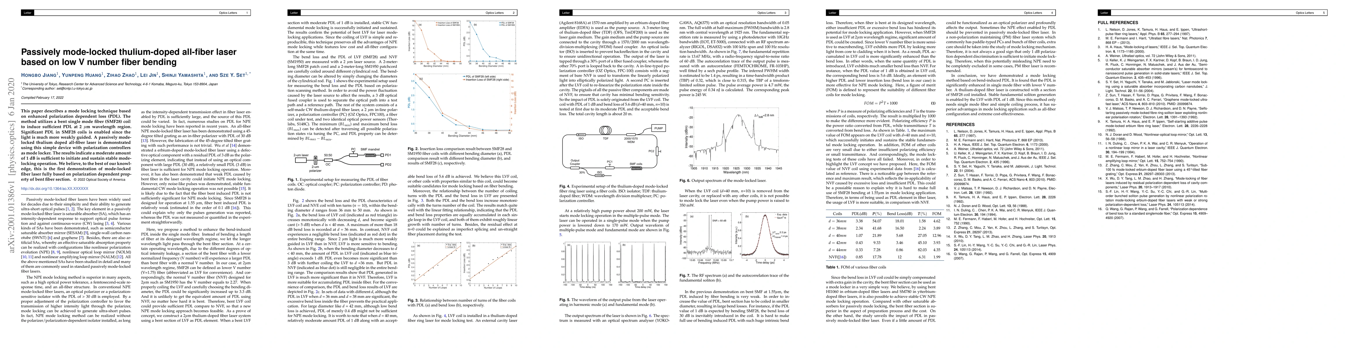This paper presents a mode-locked thulium-doped all-fiber laser using a bent low V number fiber to induce polarization dependent loss, demonstrating stable operation with just 1 dB of PDL, marking the first fully polarization-based mode-locking method in such lasers.