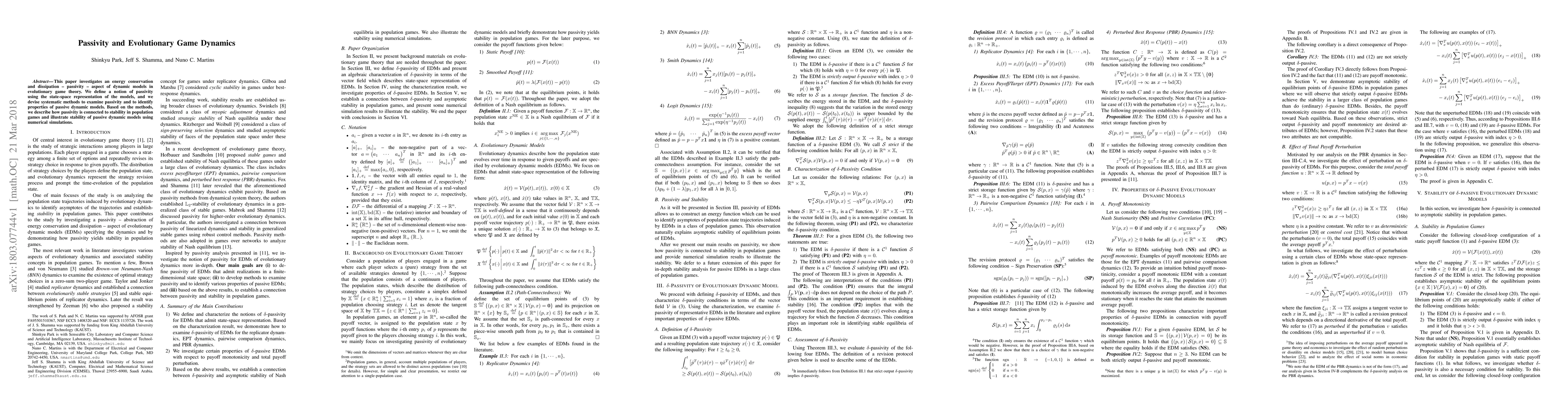 This paper defines passivity in the context of evolutionary game theory and develops methods to analyze it, showing its connection to stability in population games and illustrating this with numerical simulations. Passivity is linked to the stability of passive dynamic models in these games.