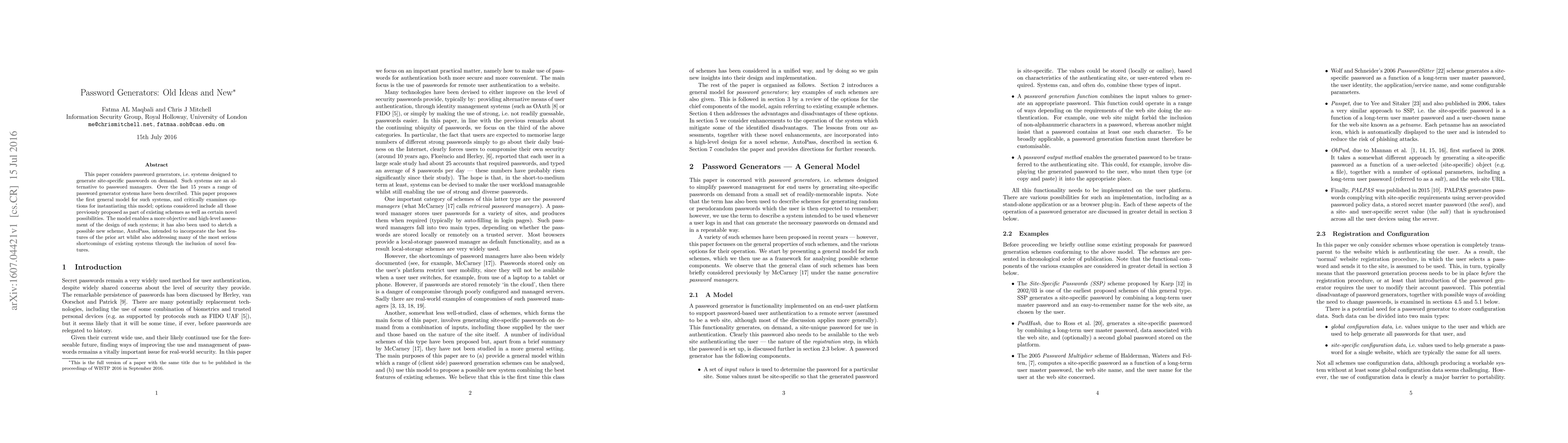A new general model for password generators is proposed, enabling an objective assessment of system design, while AutoPass scheme incorporates the best features of prior art to address existing shortcomings.