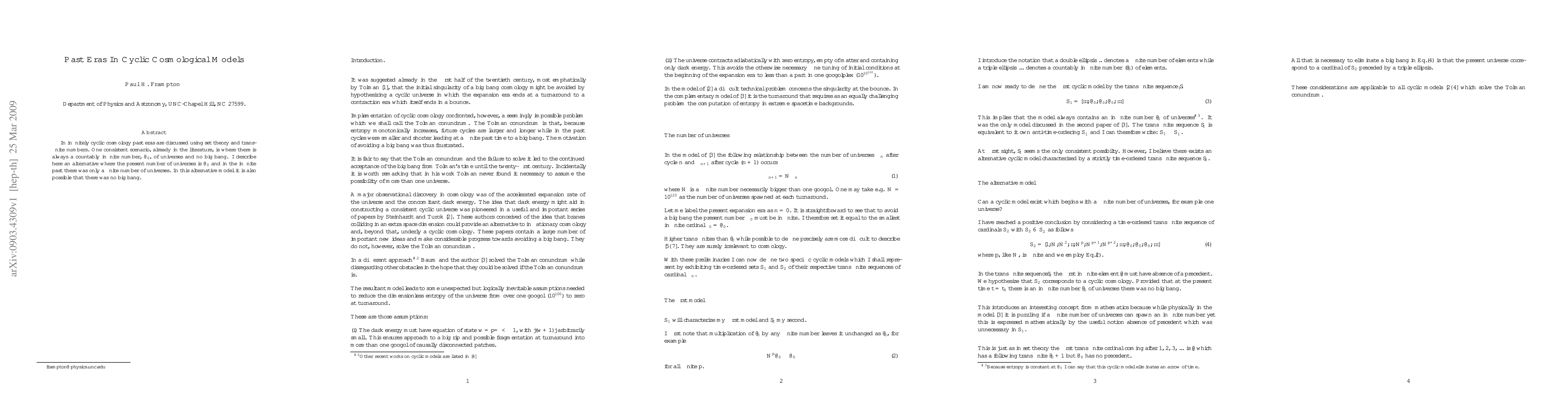 In infinitely cyclic cosmology past eras are discussed using set theory and transfinite numbers. One consistent scenario, already in the literature, is where there is always a countably infinite number, $\aleph_0$, of universes and no big bang. I describe here an alternative where the present number of universes is $\aleph_0$ and in the infinite past there was only a finite number of universes. In this alternative model it is also possible that there was no big bang.