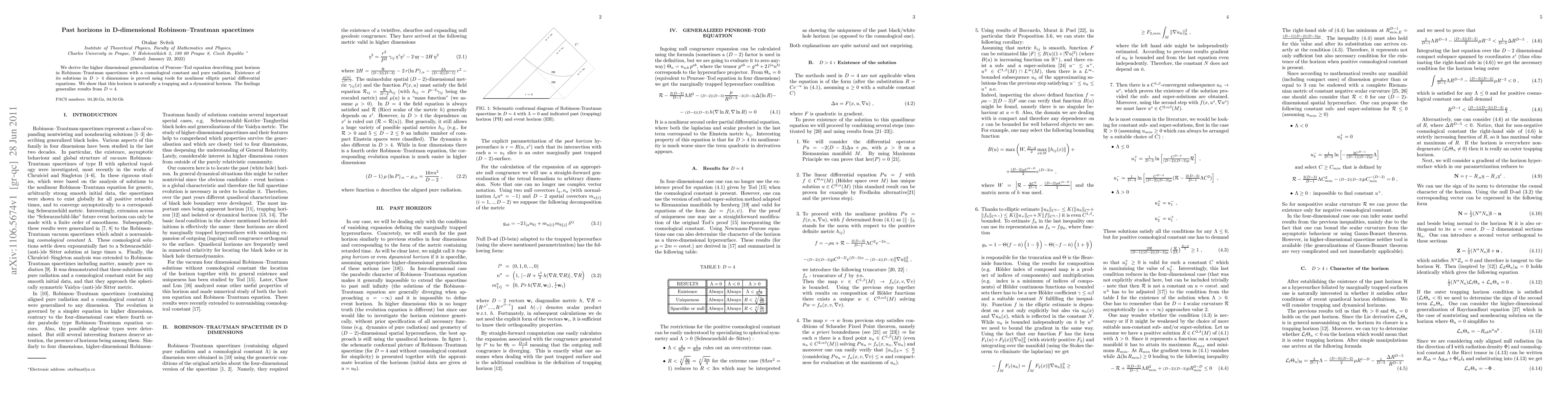 We derive the higher dimensional generalization of Penrose--Tod equation describing past horizon in Robinson--Trautman spacetimes with a cosmological constant and pure radiation. Existence of its solutions in $D>4$ dimensions is proved using tools for nonlinear elliptic partial differential equations. We show that this horizon is naturally a trapping and a dynamical horizon. The findings generalize results from D=4.