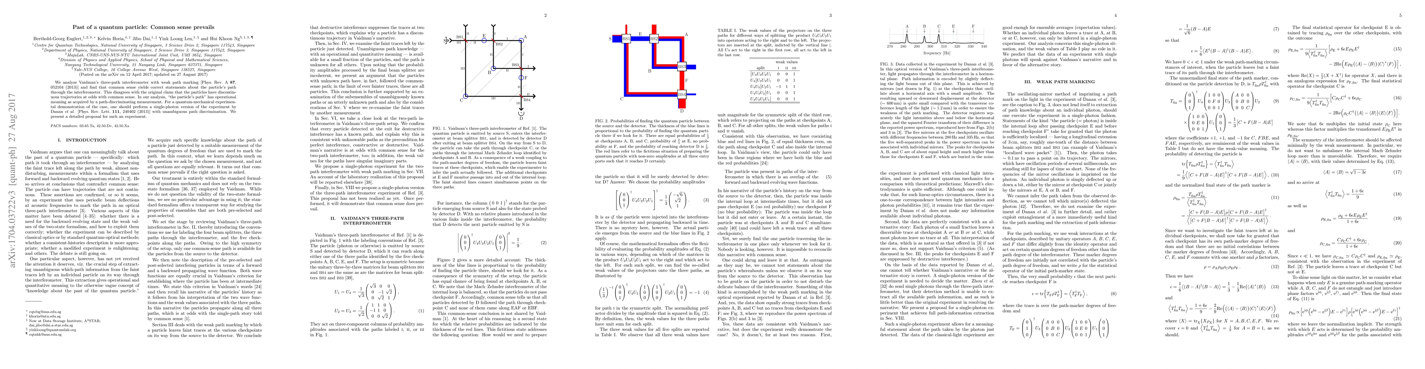We analyze Vaidman's three-path interferometer with weak path marking [Phys. Rev. A 87, 052104 (2013)] and find that common sense yields correct statements about the particle's path through the interferometer. This disagrees with the original claim that the particles have discontinuous trajectories at odds with common sense. In our analysis, "the particle's path" has operational meaning as acquired by a path-discriminating measurement. For a quantum-mechanical experimental demonstration of the case, one should perform a single-photon version of the experiment by Danan et al. [Phys. Rev. Lett. 111, 240402 (2013)] with unambiguous path discrimination. We present a detailed proposal for such an experiment.