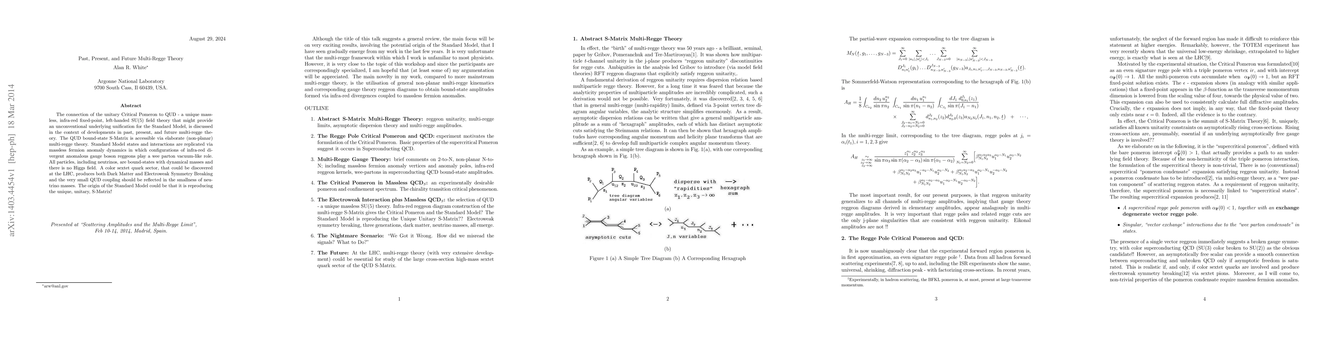 The connection of the unitary Critical Pomeron to QUD - a unique massless, infra-red fixed-point, left-handed SU(5) field theory that might provide an unconventional underlying unification for the Standard Model, is discussed in the context of developments in past, present, and future multi-regge theory. The QUD bound-state S-Matrix is accessible via elaborate (non-planar) multi-regge theory. Standard Model states and interactions are replicated via massless fermion anomaly dynamics in which configurations of infra-red divergent anomalous gauge boson reggeons play a wee parton vacuum-like role. All particles, including neutrinos, are bound-states with dynamical masses and there is no Higgs field. A color sextet quark sector, that could be discovered at the LHC, produces both Dark Matter and Electroweak Symmetry Breaking and the very small QUD coupling should be reflected in the smallness of neutrino masses. The origin of the Standard Model could be that it is reproducing the unique, unitary, S-Matrix.