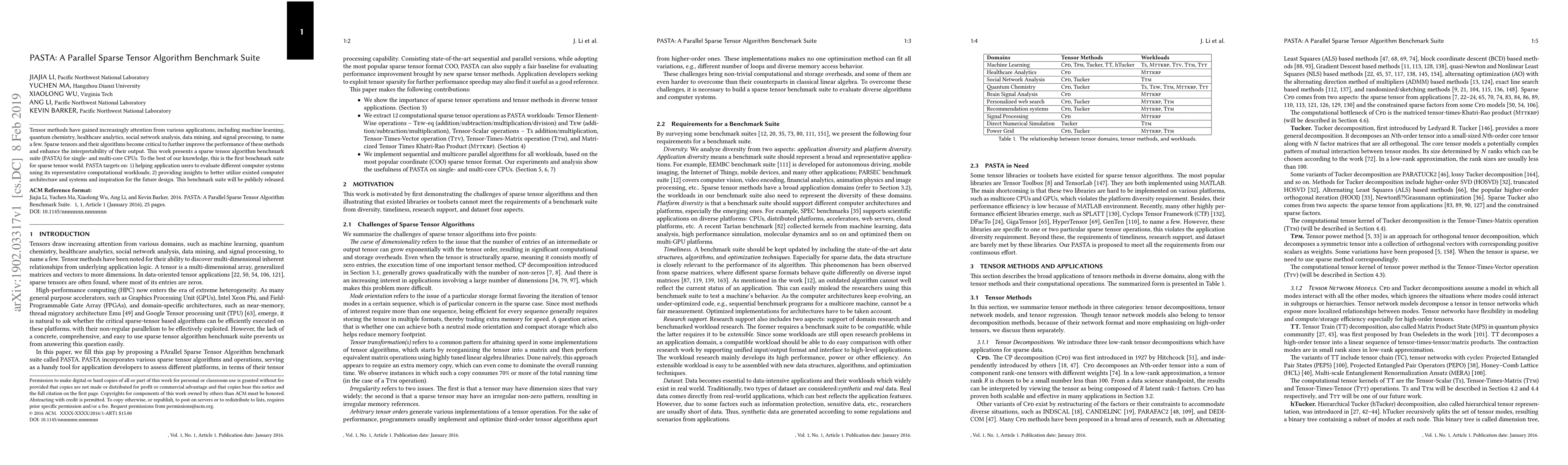 This paper introduces PASTA, a novel benchmark suite for evaluating sparse tensor algorithms on single- and multi-core CPUs, aiming to assist users in assessing computational performance and inspire future system designs. The suite is publicly available to facilitate research in tensor methods across various applications.