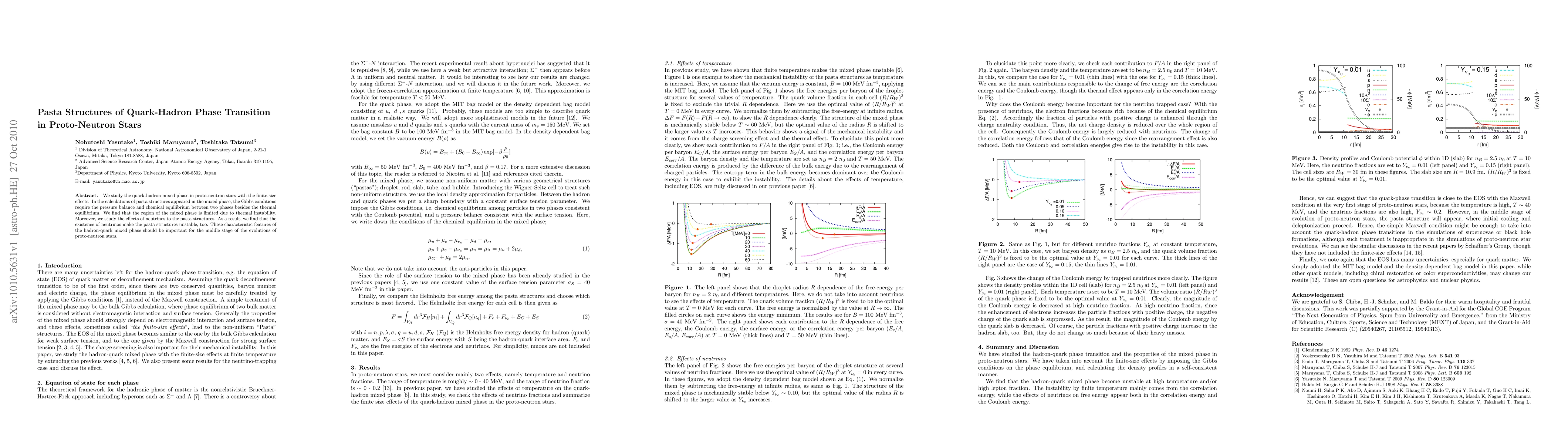This paper investigates the quark-hadron mixed phase in proto-neutron stars, focusing on pasta structures under finite-size effects and thermal instability. It also examines the destabilizing influence of neutrinos on these structures, highlighting their significance in the evolution of proto-neutron stars.