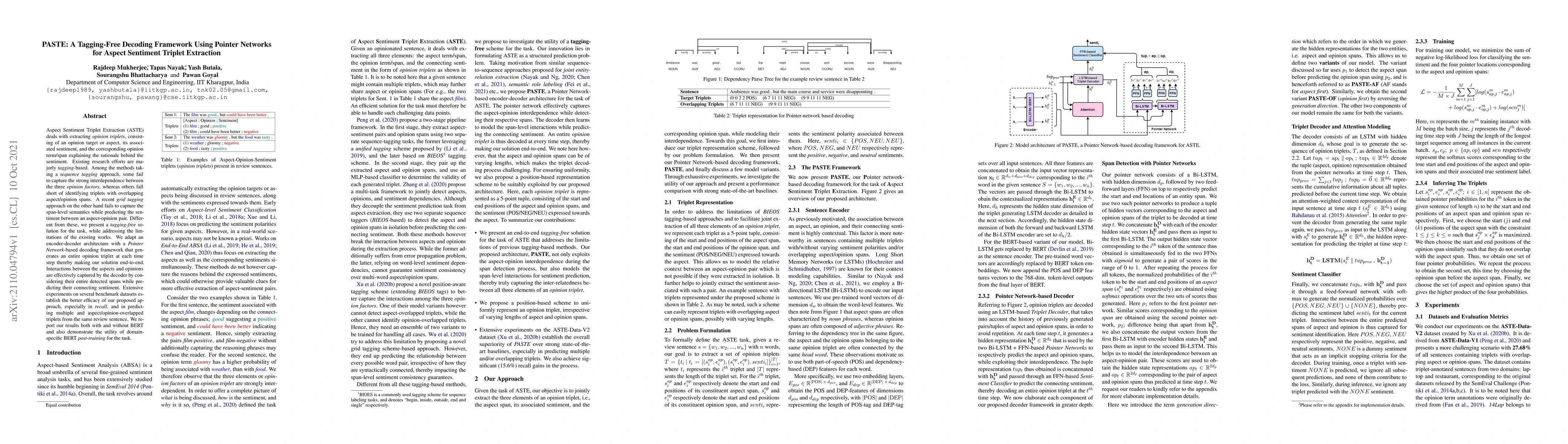The paper introduces PASTE, a tagging-free decoding framework using Pointer Networks for Aspect Sentiment Triplet Extraction, addressing limitations of tagging-based methods. The proposed method captures interactions between aspects and opinions more effectively, achieving better recall and handling overlapping spans, as demonstrated through experiments on benchmark datasets.
