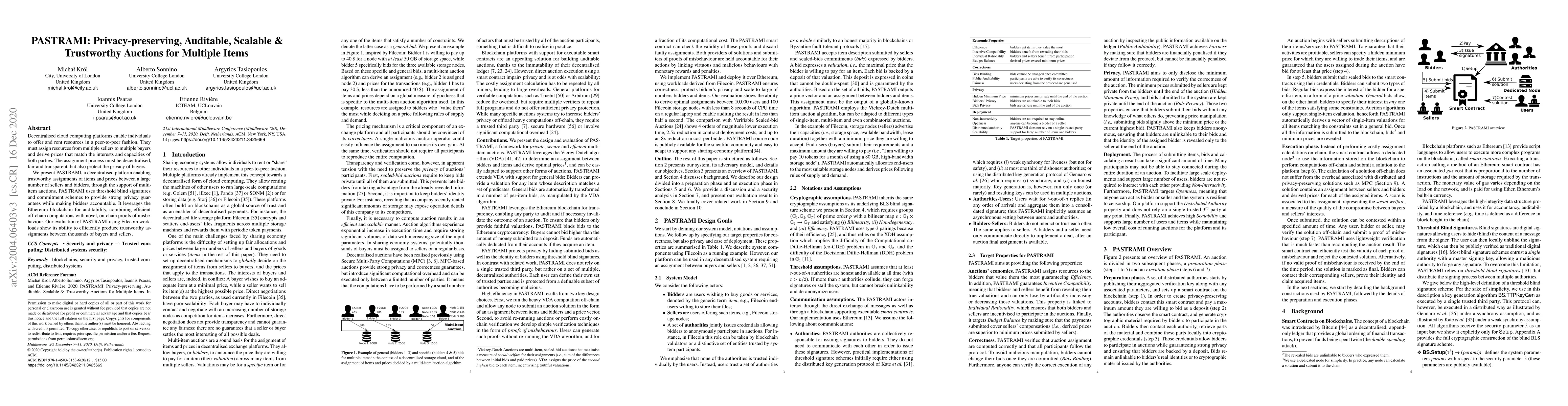 PASTRAMI is a decentralized platform that enables trustworthy assignments of items and prices between thousands of buyers and sellers while protecting buyer privacy. It leverages threshold blind signatures, commitment schemes, and the Ethereum blockchain to provide strong guarantees and auditability.