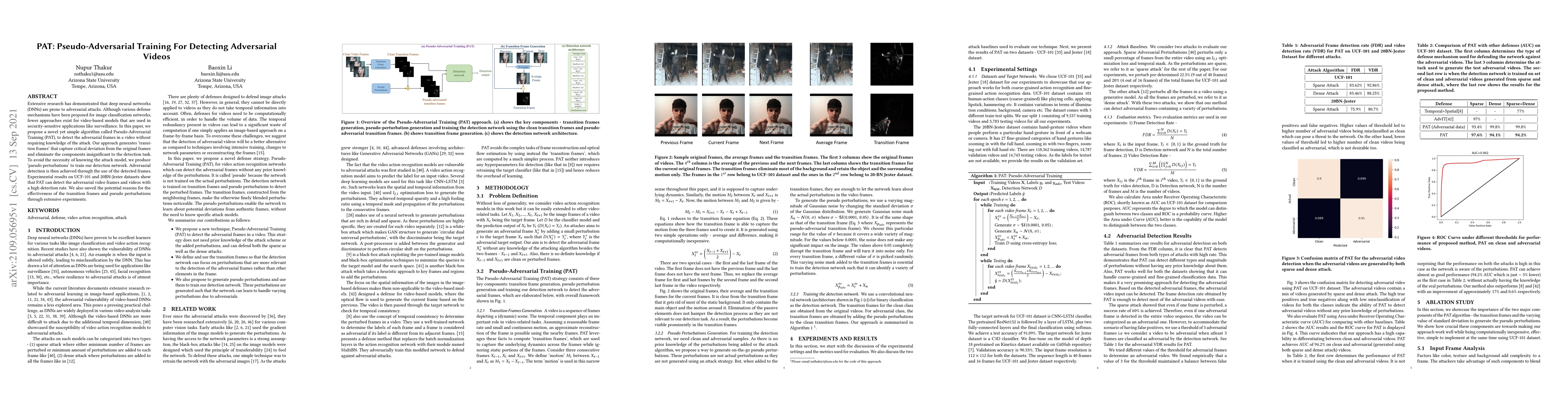 This paper proposes Pseudo-Adversarial Training (PAT) to detect adversarial attacks in video data without needing knowledge of the attack. PAT generates transition frames and pseudo perturbations to enhance detection, achieving high detection rates on UCF-101 and 20BN-Jester datasets.