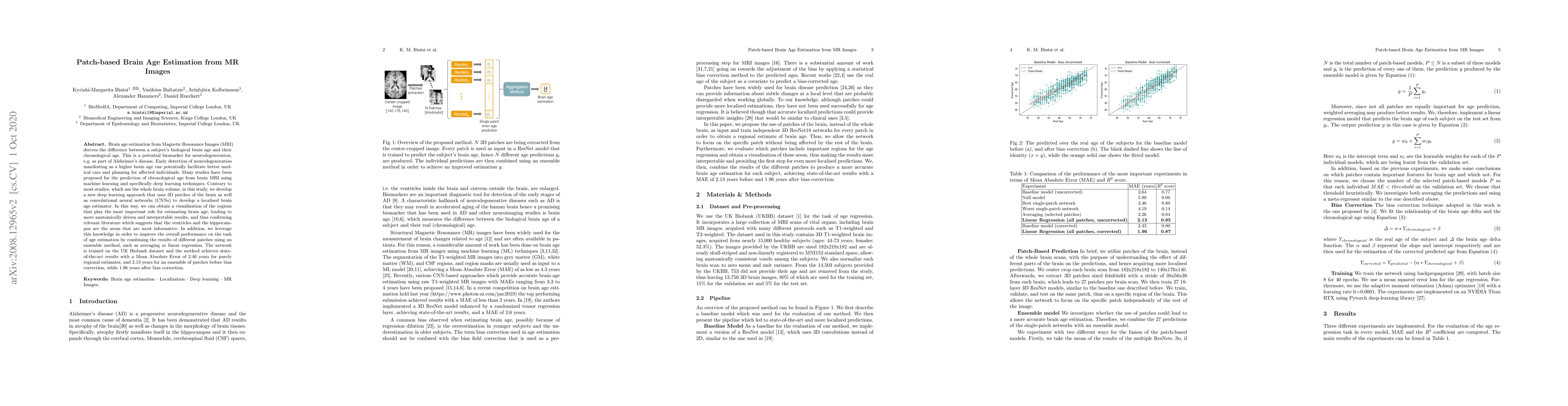 This study proposes a novel deep learning approach for brain age estimation using 3D patches of MRI scans, focusing on localized brain regions like the ventricles and hippocampus. The method achieves state-of-the-art results with an ensemble of patch-based convolutional neural networks, reducing Mean Absolute Error to 1.96 years post-bias correction.