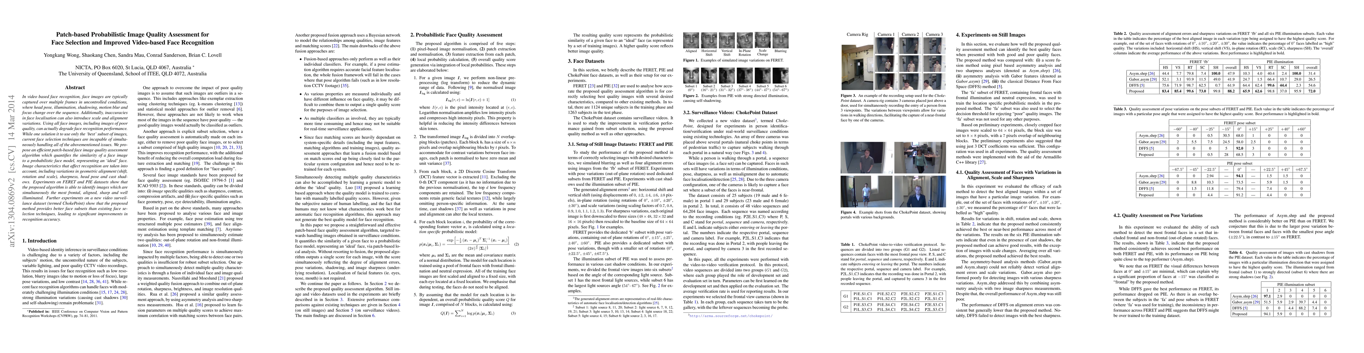 This paper proposes a patch-based probabilistic algorithm for assessing face image quality in video-based recognition, focusing on selecting the best subset of images to improve recognition accuracy. The method effectively identifies frontal, aligned, sharp, and well-illuminated images, leading to significant improvements over existing techniques.