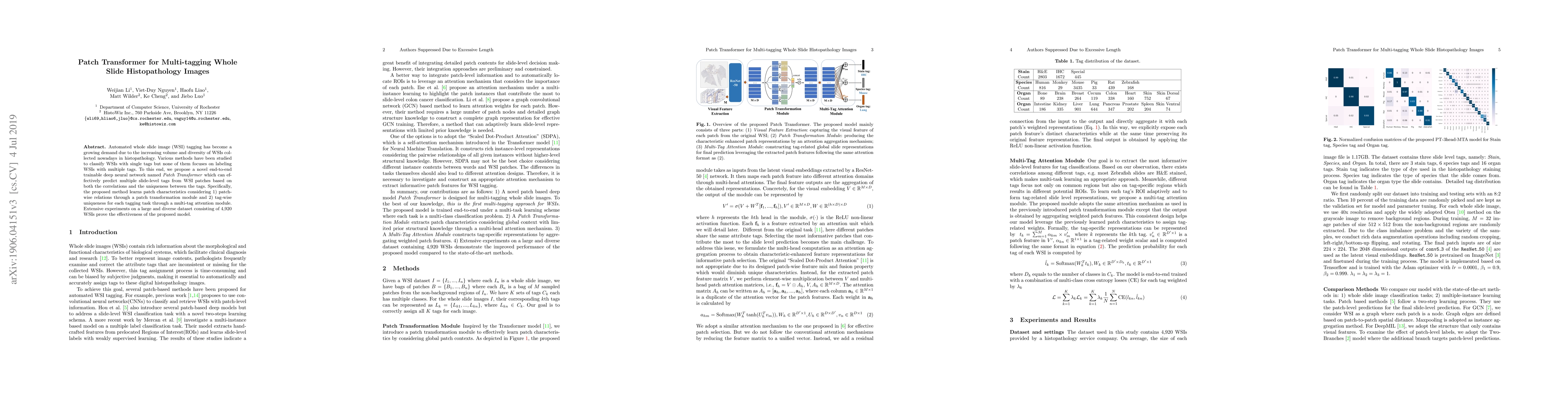The paper proposes a Patch Transformer model for multi-tagging of whole slide histopathology images, addressing the challenge of assigning multiple relevant tags to WSIs. The model leverages patch transformation and multi-tag attention to capture patch-wise relations and tag uniqueness, respectively, demonstrating effectiveness through experiments on a large dataset.