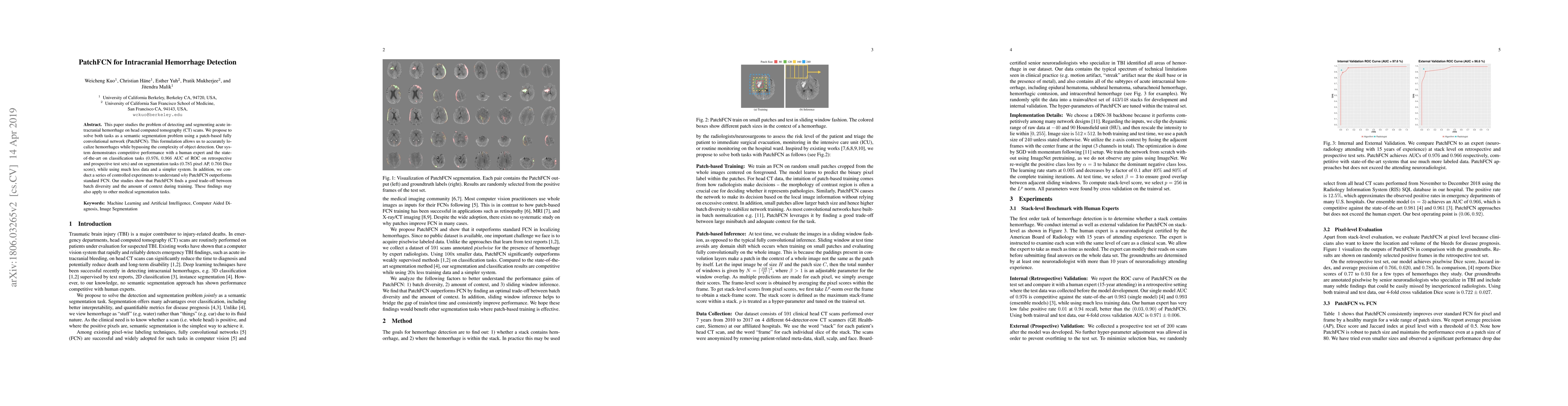This paper proposes a patch-based fully convolutional network (PatchFCN) for detecting and segmenting acute intracranial hemorrhage on CT scans, achieving competitive performance with less data and a simpler system. PatchFCN outperforms standard FCN by balancing batch diversity and context during training, potentially benefiting other medical segmentation tasks.