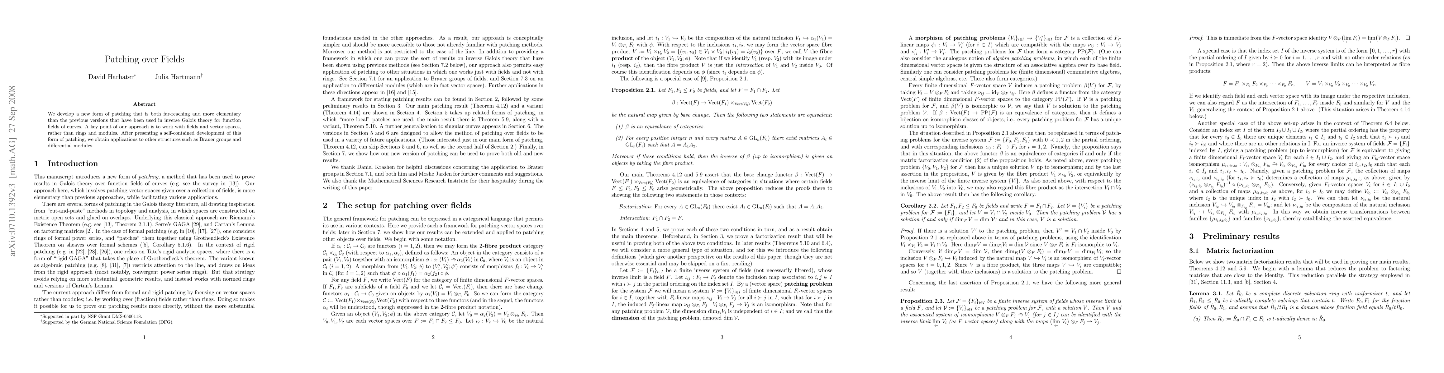 The paper introduces a novel, elementary patching method for function fields of curves, focusing on fields and vector spaces instead of rings and modules, and applies it to study Brauer groups and differential modules.