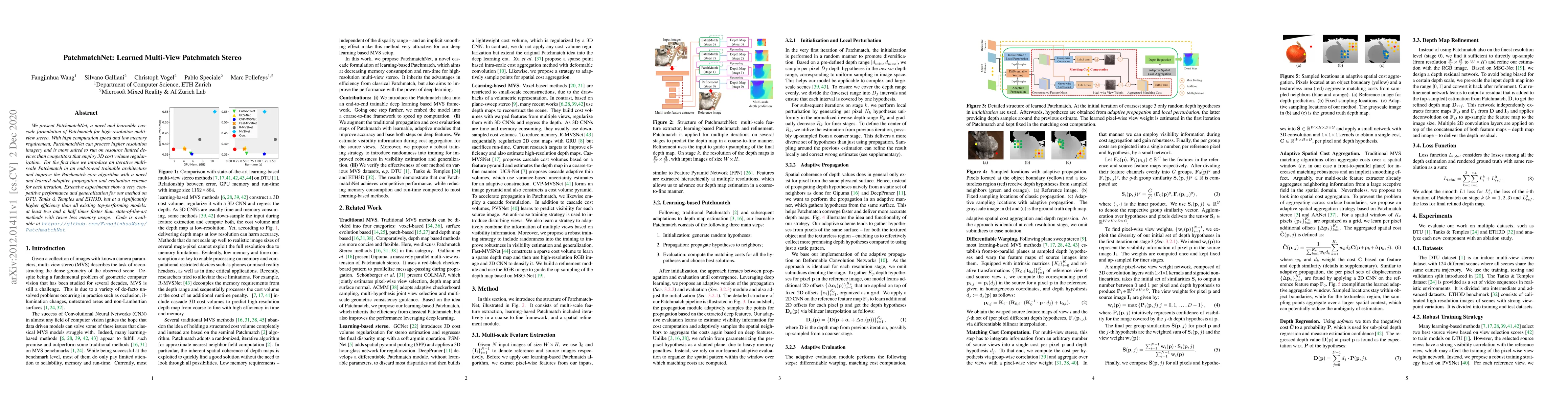 PatchmatchNet is a learned cascade formulation of Patchmatch for high-resolution multi-view stereo, introducing an iterative multi-scale Patchmatch in an end-to-end trainable architecture with adaptive propagation and evaluation schemes.