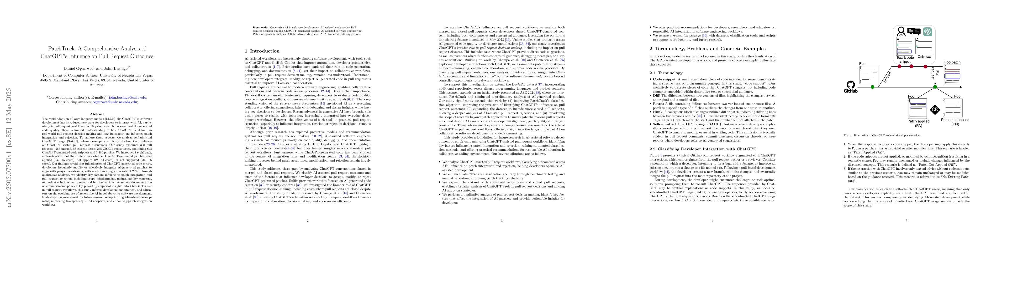Researchers analyzed 338 GitHub pull requests to understand how developers use ChatGPT for code integration, finding that 25% of AI-generated patches were integrated into final code.