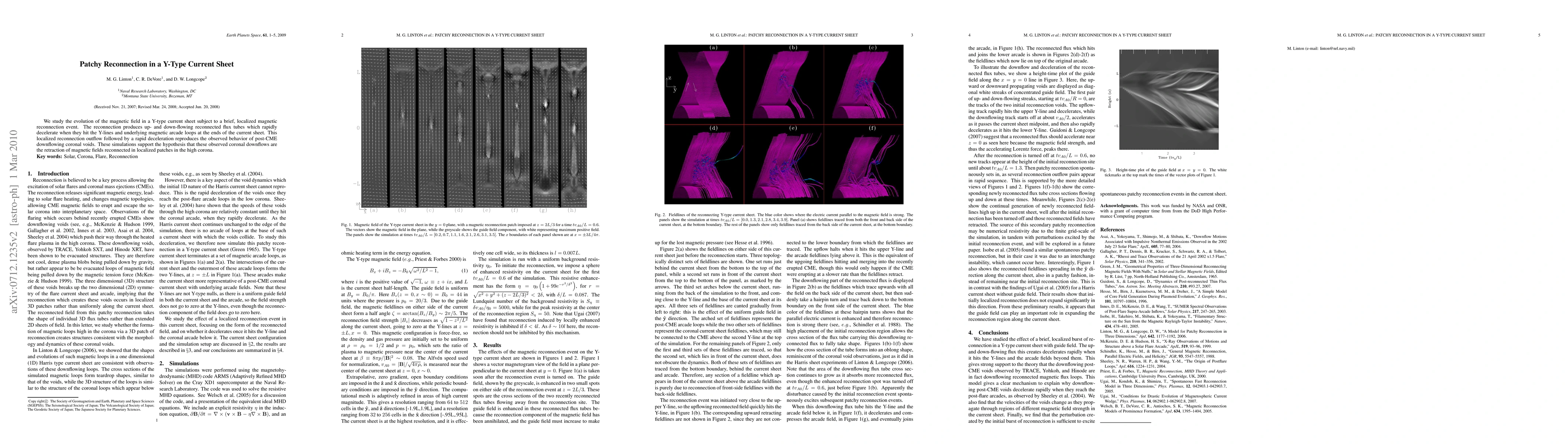 We study the evolution of the magnetic field in a Y-type current sheet subject to a brief, localized magnetic reconnection event. The reconnection produces up- and down-flowing reconnected flux tubes which rapidly decelerate when they hit the Y-lines and underlying magnetic arcade loops at the ends of the current sheet. This localized reconnection outflow followed by a rapid deceleration reproduces the observed behavior of post-CME downflowing coronal voids. These simulations support the hypothesis that these observed coronal downflows are the retraction of magnetic fields reconnected in localized patches in the high corona.