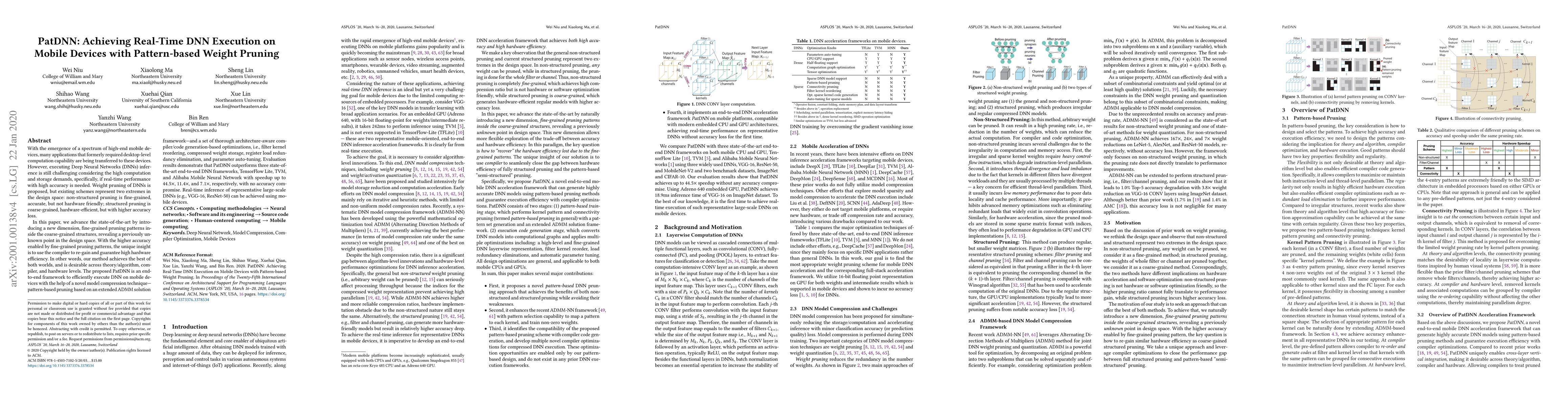 PatDNN introduces fine-grained pruning patterns within coarse-grained structures to achieve real-time DNN execution on mobile devices, balancing accuracy and hardware efficiency. The framework combines model compression and compiler optimizations, outperforming existing frameworks like TensorFlow Lite, TVM, and Alibaba Mobile Neural Network.