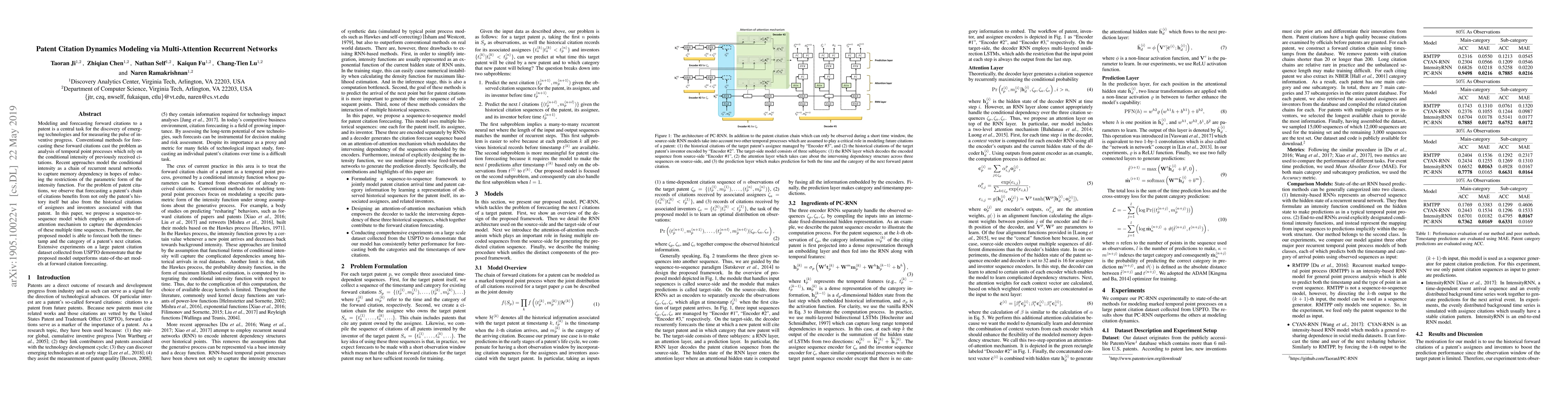 This paper proposes a multi-attention recurrent network model to forecast forward patent citations, incorporating historical data from both the patent and its associated assignees and inventors. The model uses an attention-of-attention mechanism to enhance forecasting accuracy for both the timing and category of future citations, outperforming existing methods on a USPTO dataset.